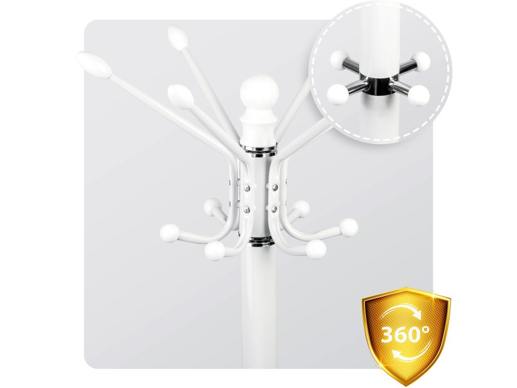 Datorită mulțimii de cârlige vă veți organiza cu ușurință holul. Partea superioară a cuierului se rotește la 360 de grade.
