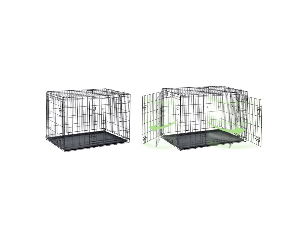 - Ușile duble – față și lateral – permit accesul ușor și flexibilitate în plasarea cuștii.