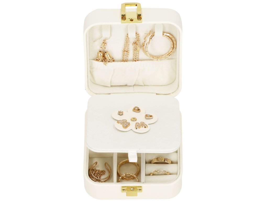 - 1x compartiment pentru inele: 8,5 x 3 cm