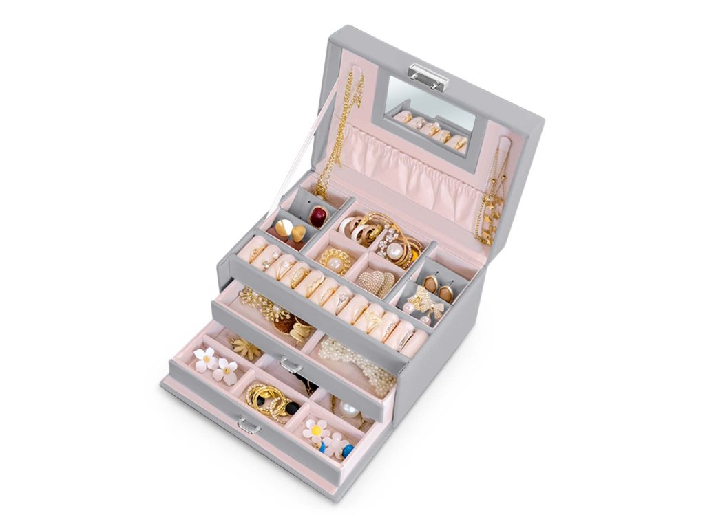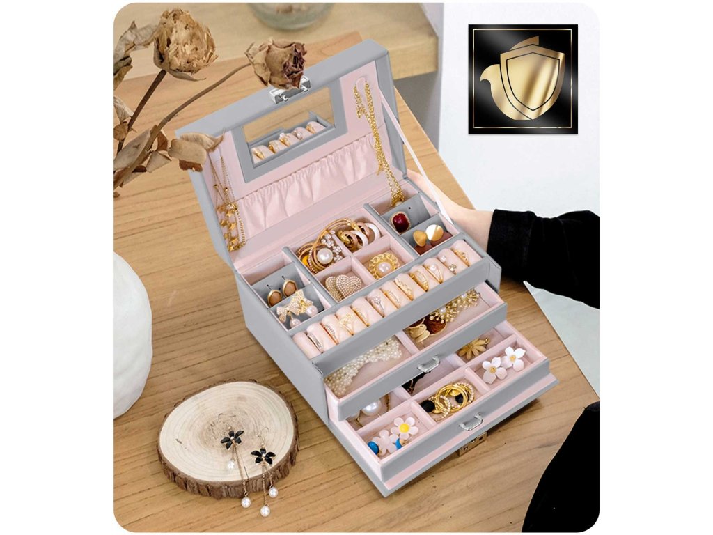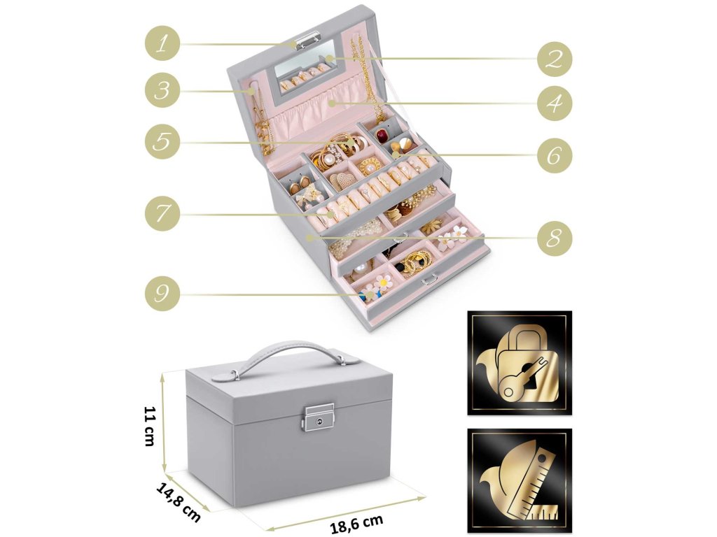 Această casetă îndeplinește visele fetelor și nevoile femeilor. Este suficient de spațioasă pentru a deveni o comoară cu primele comori ale unei fetițe și la fel de elegantă pentru a depozita colecția de bijuterii a unei femei adulte.
