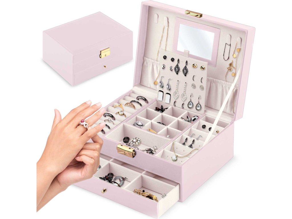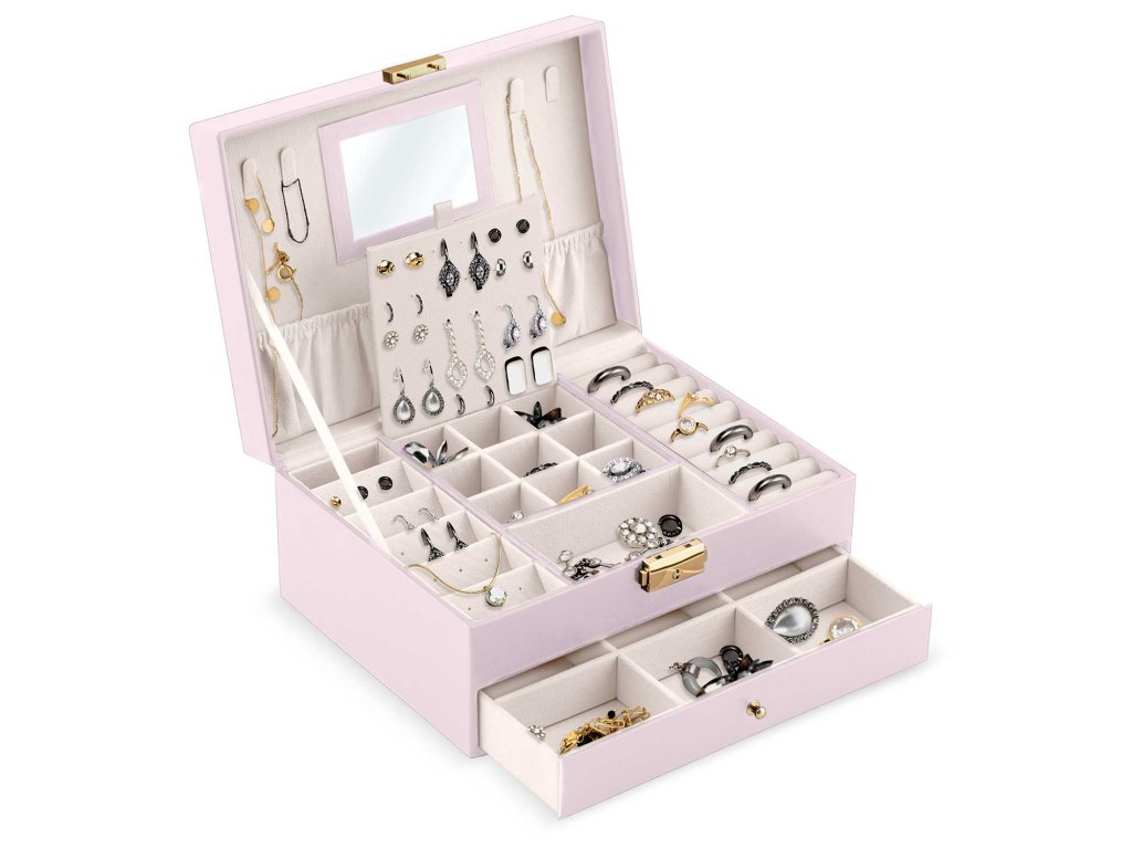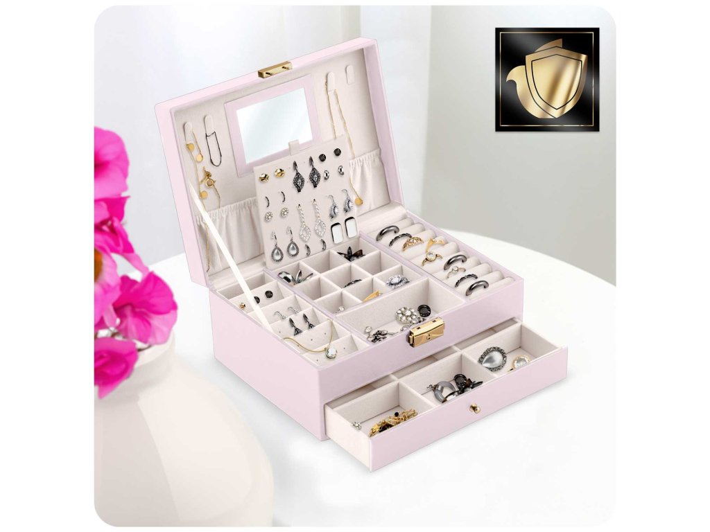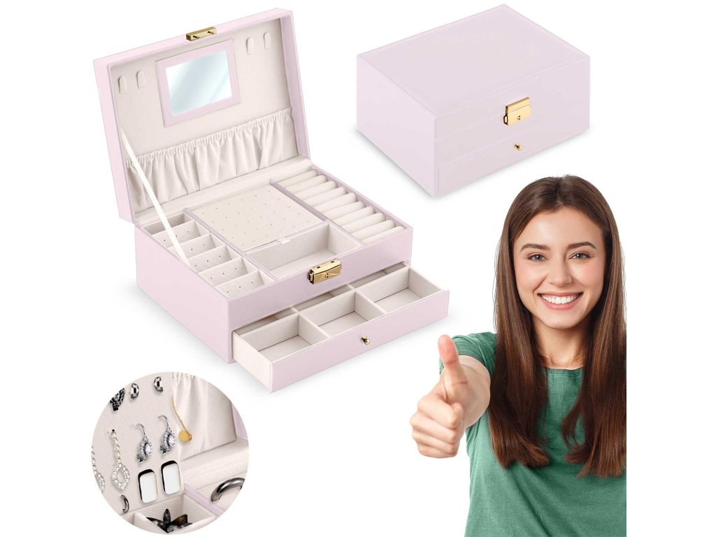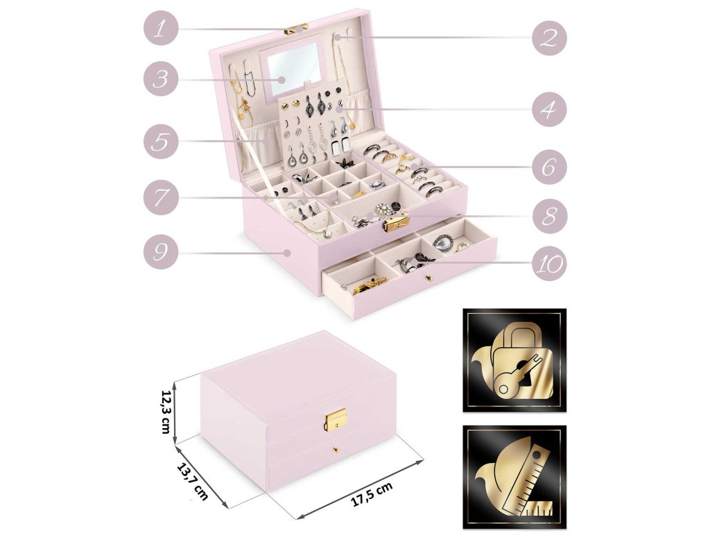 Stilul și prelucrarea depășesc standardul acestui tip de produse disponibile pe piața poloneză. Cutia noastră de bijuterii va satisface o gamă largă de gusturi și va fi utilă pentru fiecare doamnă fără a întreba vârsta ei.
