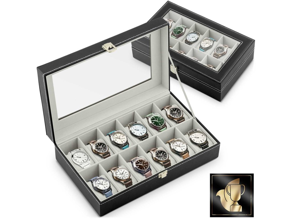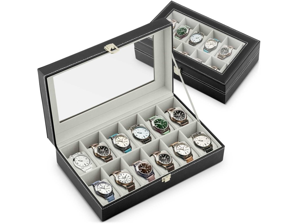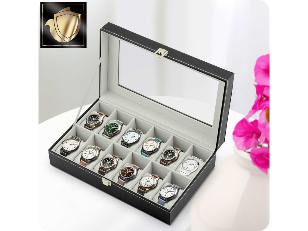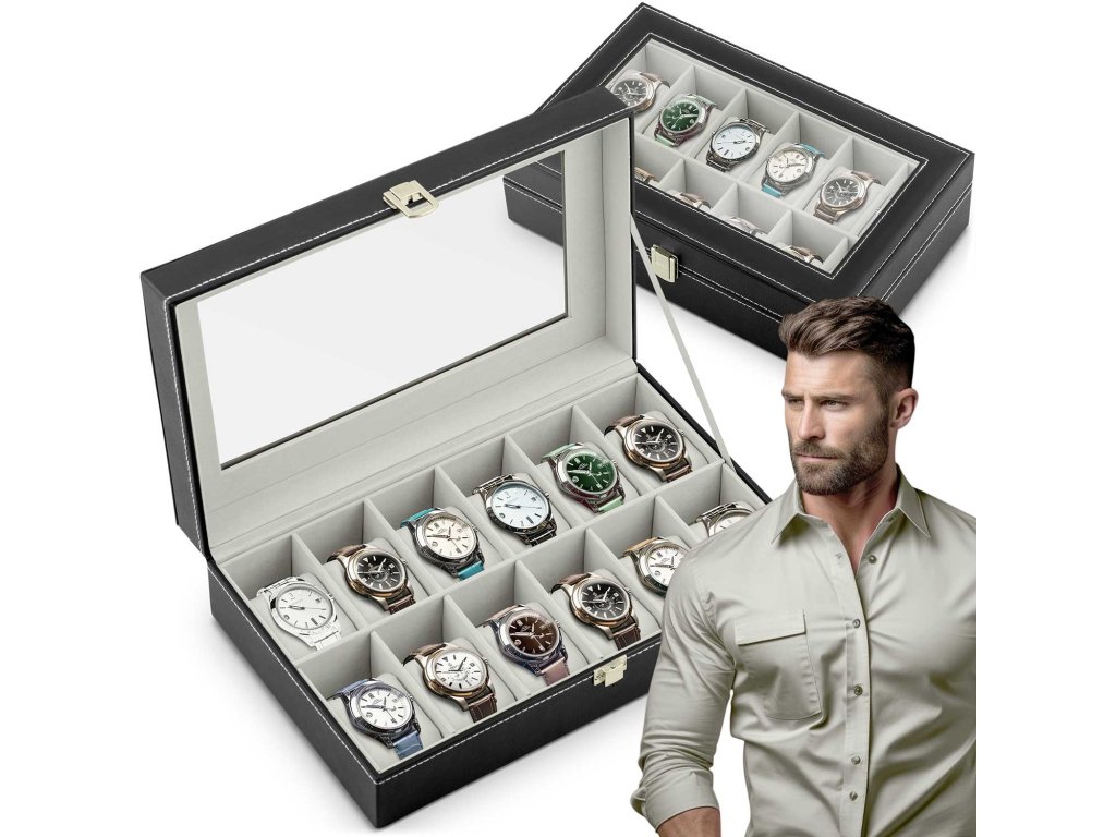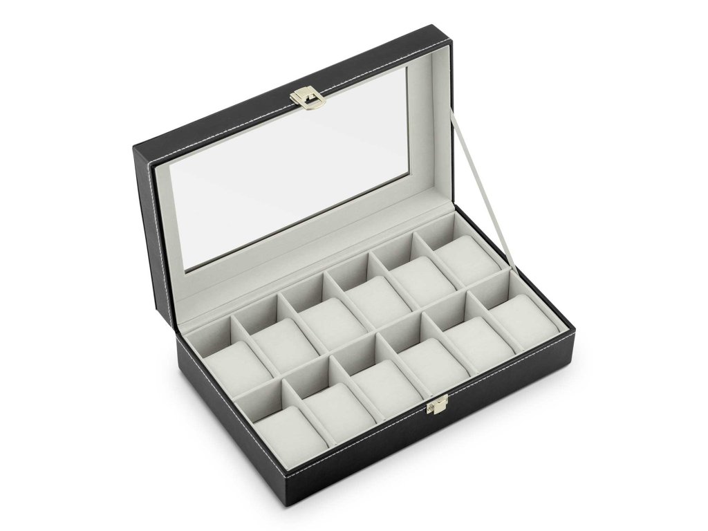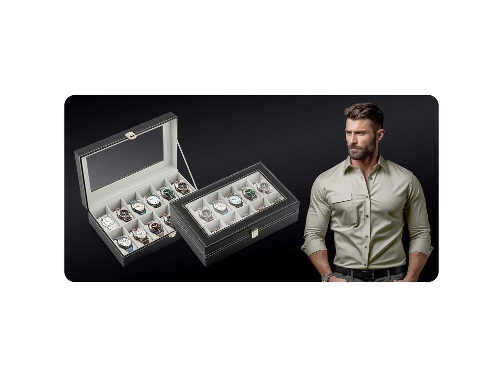 Cu posibilitatea de a stoca până la 12 ceasuri este cadoul ideal pentru orice bărbat și o necesitate pentru colecționari. Produsul oferă un spațiu dedicat pentru fiecare ceas, prevenind posibilele zgârieturi, la care se poate ajunge atunci când ceasurile sunt depozitate împreună. Compartimentele căptușite cu material moale pot fi folosite și pentru depozitarea oricărui alt tip de bijuterii.