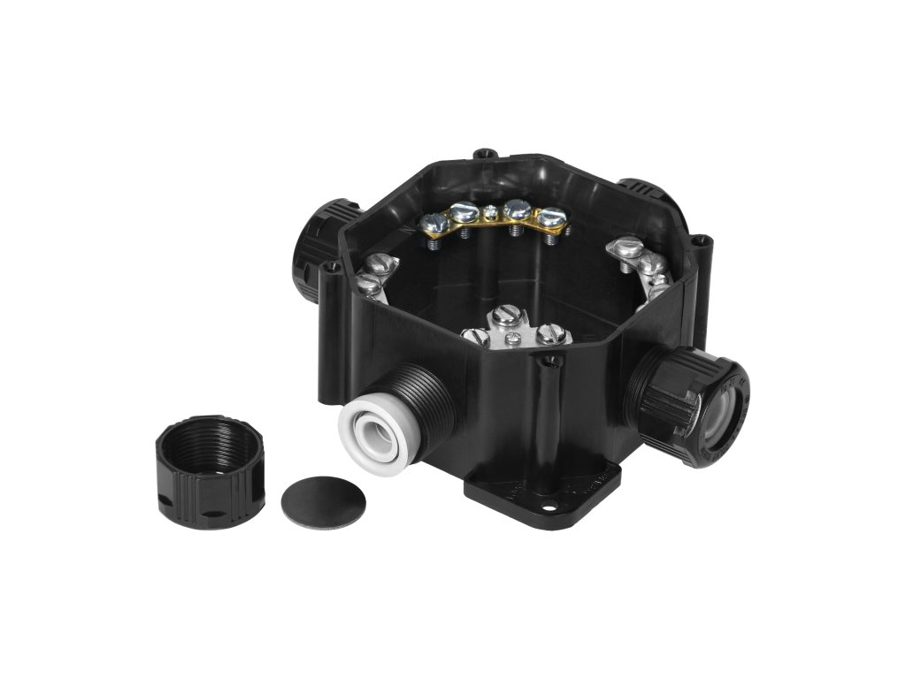 - Cutia de distribuție impermeabilă cu 4 intrări 144x144mm neagră