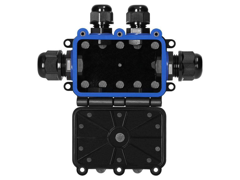 - Impermeabilitate și protecție: Cu clasificarea IP68, această cutie de conexiuni oferă protecție excelentă împotriva prafului și apei. Este complet protejată împotriva imersiei în apă, garantând conexiuni fiabile chiar și în medii dificile.