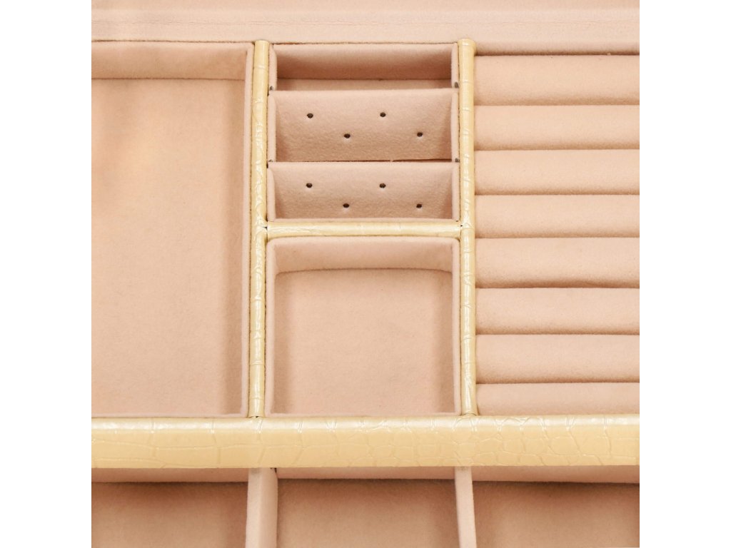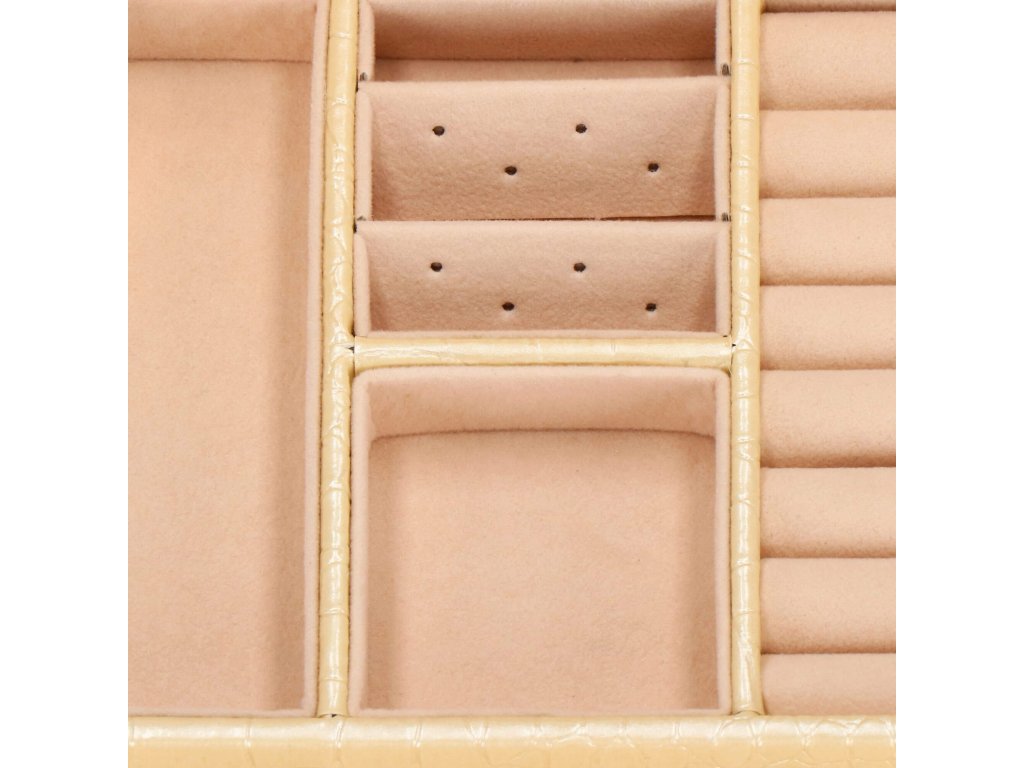 Compartiment superior cu divizare: 5 x 5 cm / 2 inserturi cu găuri pentru cercei