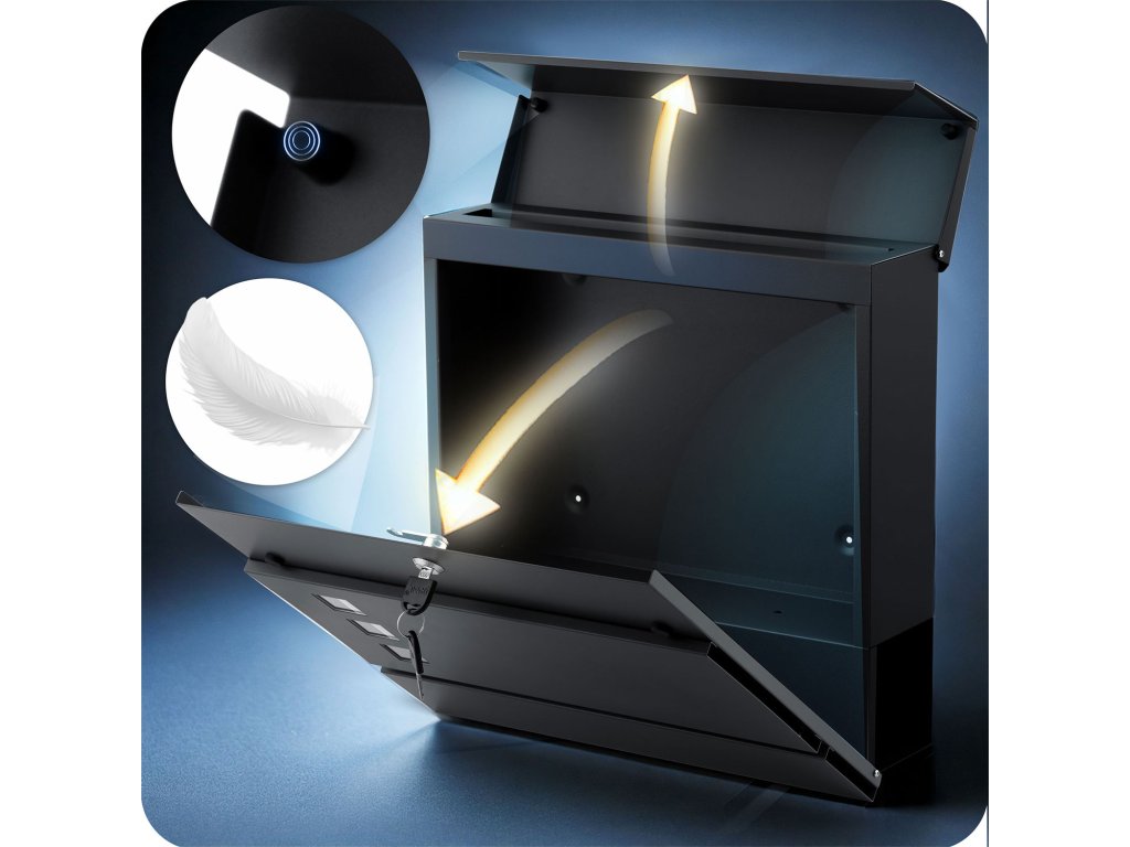 Designul fantei de introducere cu clapete special profilate protejează corespondența nu doar împotriva ploii și zăpezii, ci și împotriva privirii indiscrete a unei persoane neautorizate.