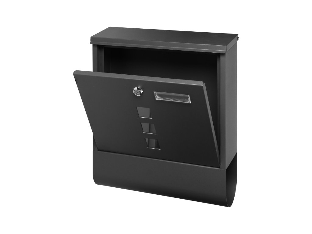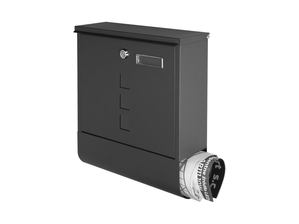 Această cutie poștală modernă va fi o carte de vizită elegantă și atractivă pentru casa dumneavoastră. Este potrivită pentru instalare în interior și pe fațadele exterioare sau garduri. Datorită dimensiunilor sale mari, cutia este foarte spațioasă și poate găzdui fără probleme scrisori de format A4. În plus, are un suport pentru ziare, o etichetă cu nume și ferestre, care nu sunt doar decorative, ci permit și o privire în interiorul cutiei. Carcasa este fabricată din oțel galvanizat, acoperit cu un strat de pulbere, asigurând astfel rezistența la condițiile meteorologice nefavorabile. Cutia dispune de o deschidere confortabilă cu ajutorul unei chei (2 buc în set).Specificații tehnice
