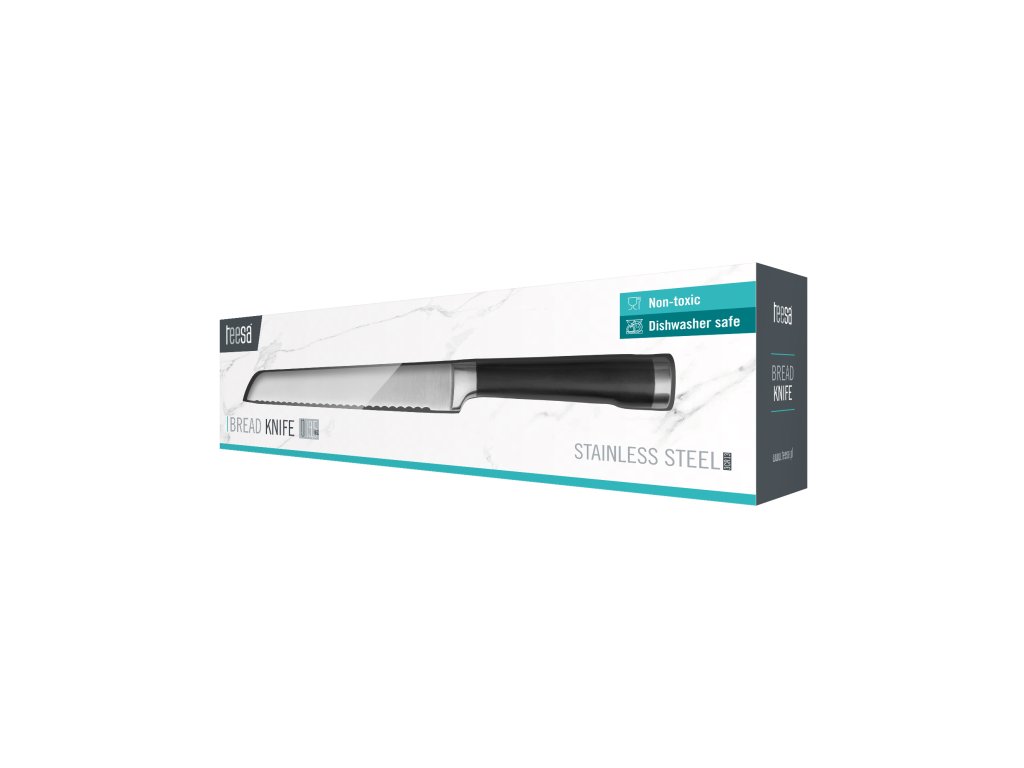 Cuțitul de pâine Teesa se remarcă și prin confortul ridicat de utilizare și designul său elegant. Mânerul confortabil cu opritor de siguranță pentru degete garantează că produsul stă în siguranță în mână, chiar și când este umed sau gras. Așadar, dacă prețuiți confortul și în același timp estetica deosebită, alegeți cuțitul de pâine Teesa. Datorită combinației stilizate dintre oțel inoxidabil și mânerul negru, acesta se potrivește perfect în designul oricărei bucătării moderne.
