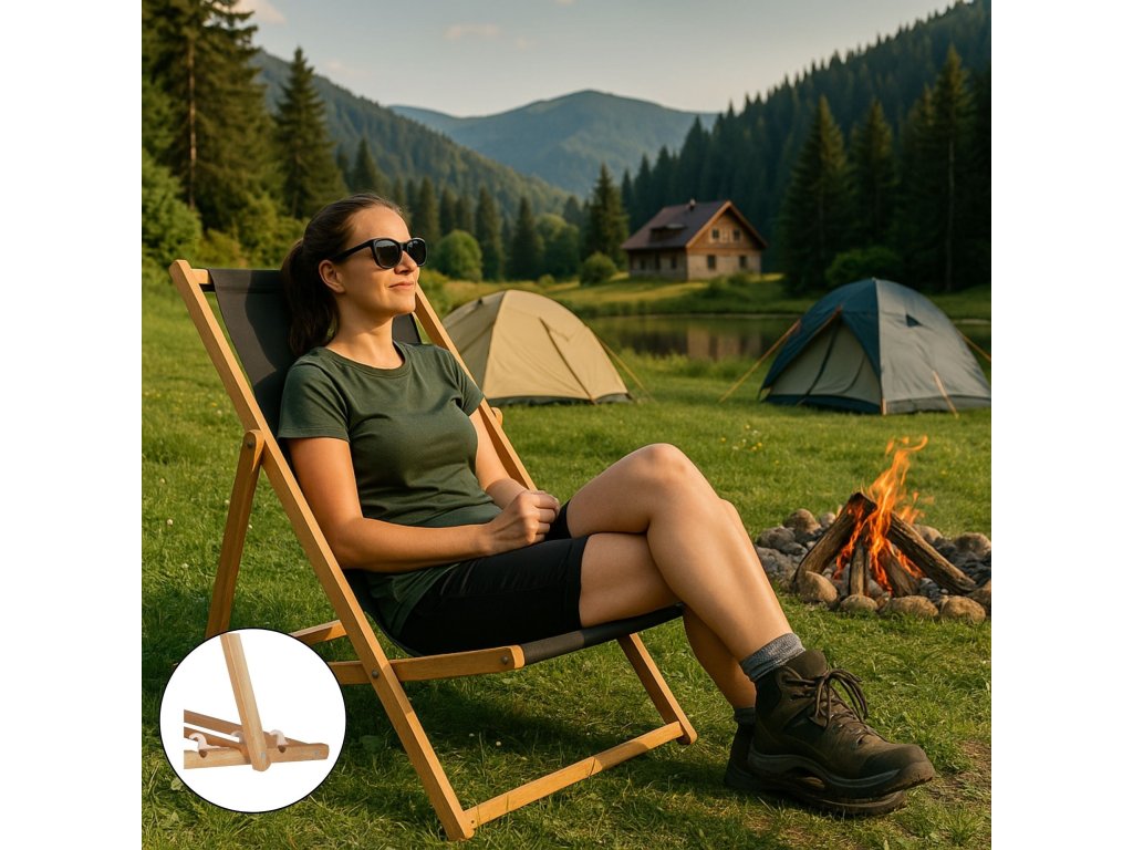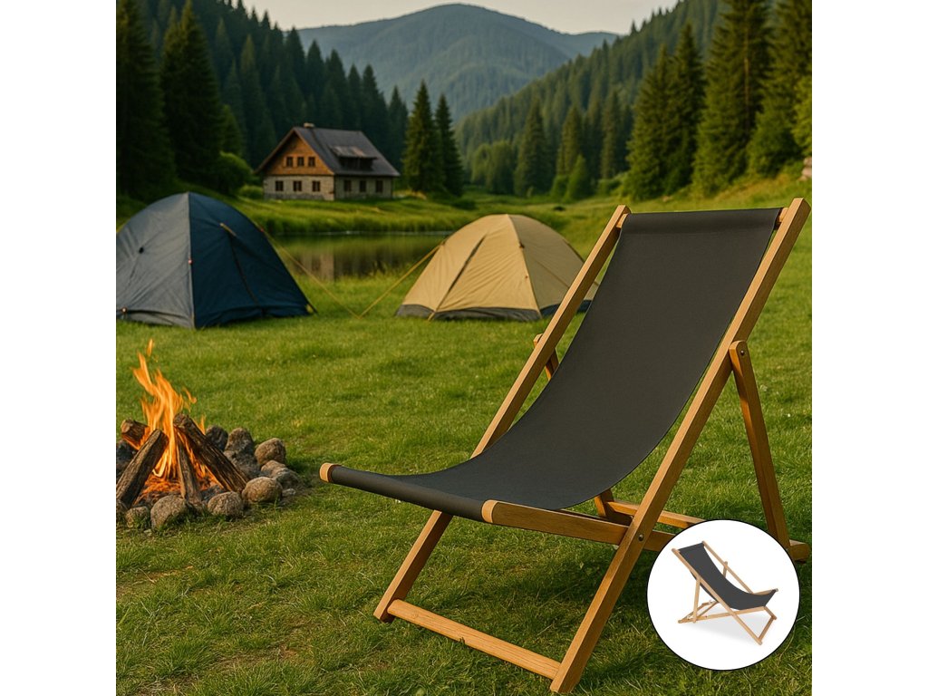 DC0006GRPH ȘEZLONG DE LEMN PLIABIL IMPREGNAT GRAFIT