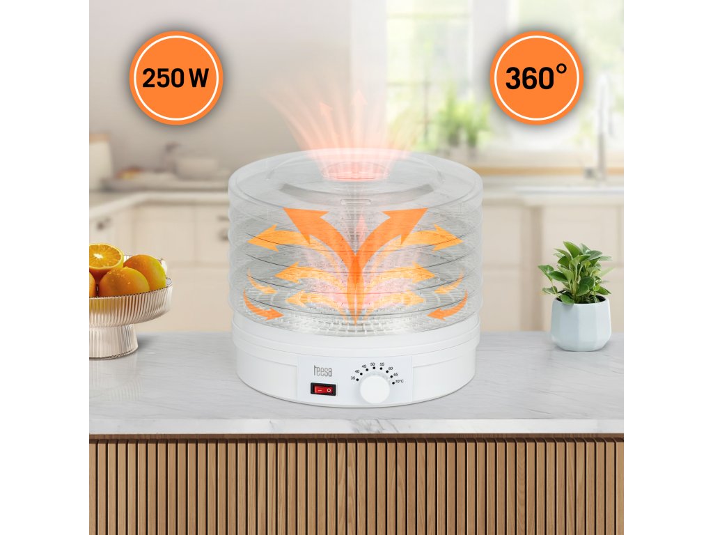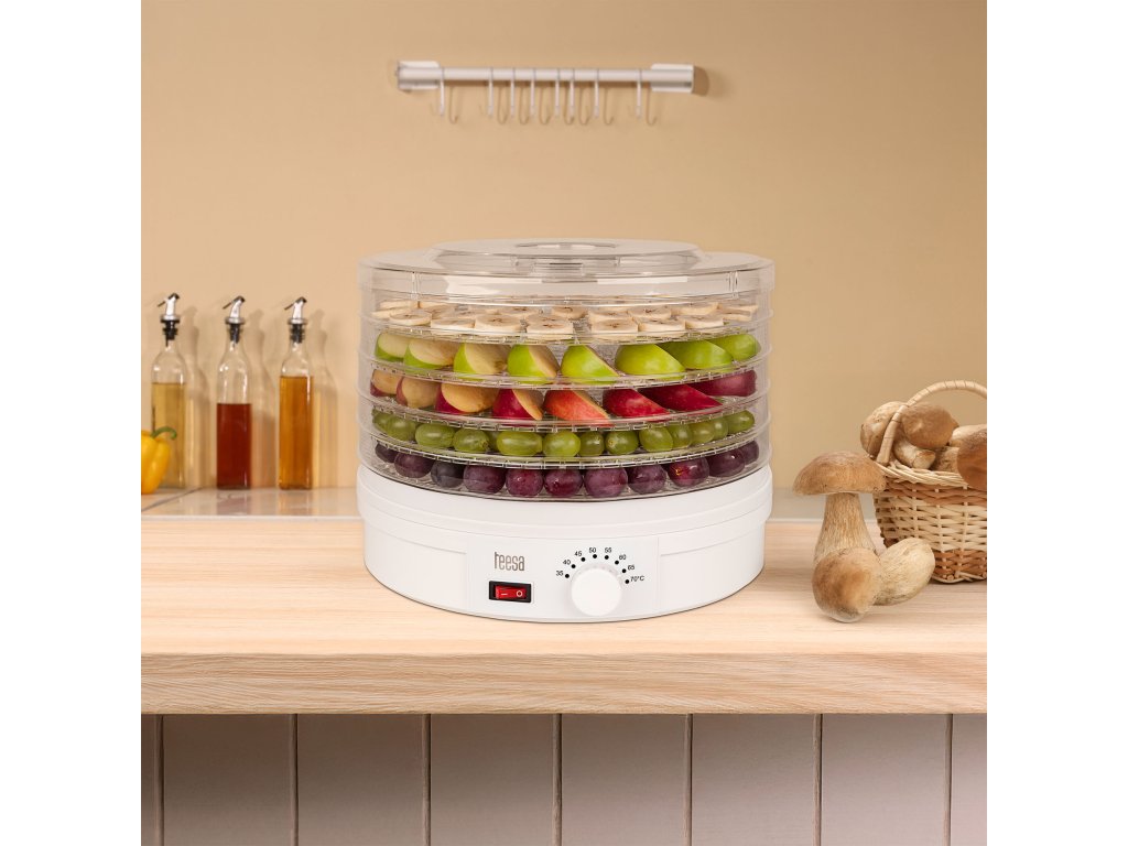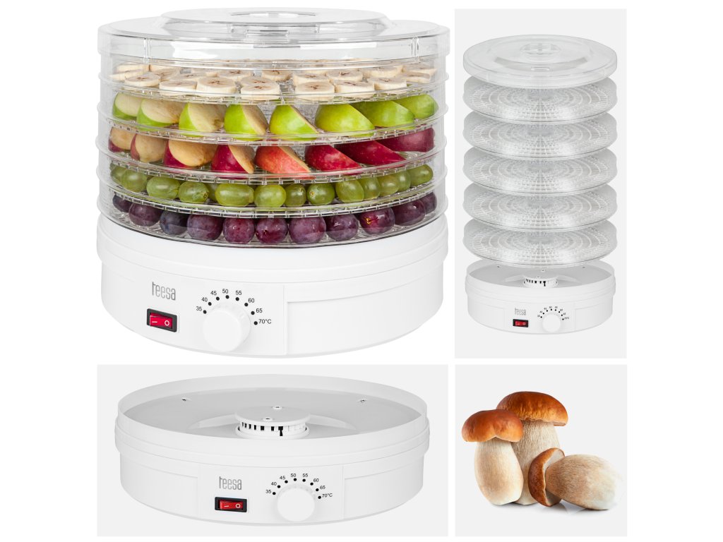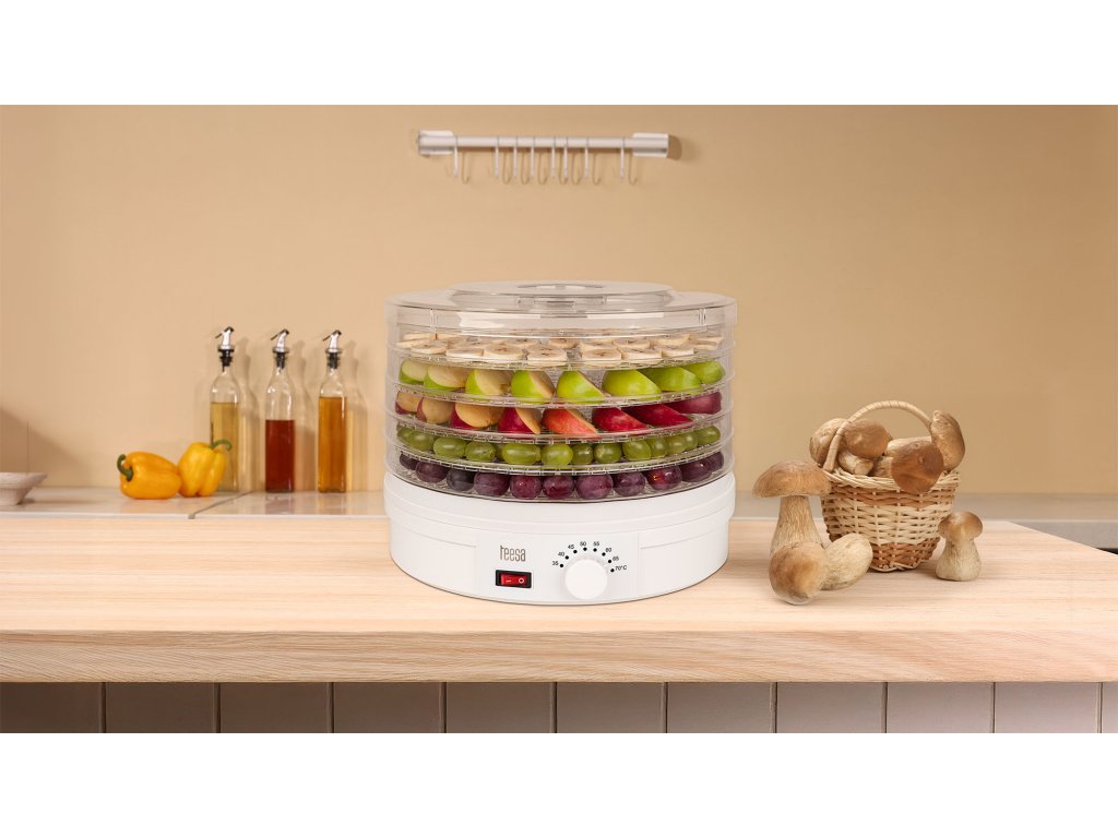 Un deshidrator de alimente este un dispozitiv care nu ar trebui să lipsească din bucătăria niciunui pasionat de alimentație sănătoasă. Cu ajutorul său, vă puteți bucura de gustul ciupercilor, legumelor și fructelor pe tot parcursul anului, fără adaos de conservanți sau alte ingrediente artificiale. În plus, vă permite să uscați flori, plante medicinale, ierburi și să pregătiți müsli.Mod de utilizare și procesul de uscare sunt foarte simple. Este suficient să așezați produsele pregătite în prealabil pe site și să setați temperatura potrivită la care doriți să uscați alimentele. Un curent de aer cald începe să circule între capacul superior, sitele de uscare și baza, evaporând apa conținută în fructe și legume, dar păstrându-le savoarea și mirosul.