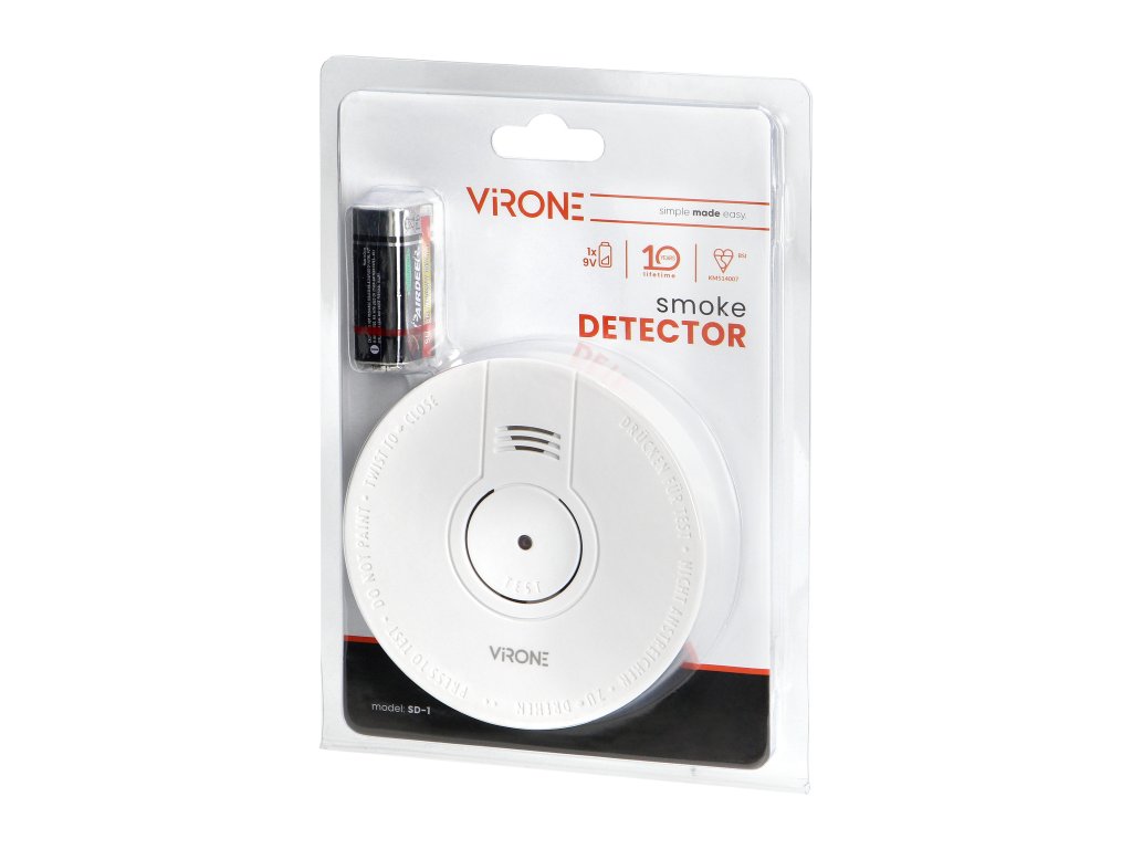 Detector de fum pe baterii, un dispozitiv care detectează particulele de fum într-o încăpere închisă și vă avertizează asupra pericolului încă din faza incipientă a unui posibil incendiu. Detectorul fotoelectric de fum servește bine ca mijloc suplimentar pentru monitorizarea pericolului și astfel vă protejează peste tot unde există un risc de incendiu.Dispozitivul este mic și ușor, de aceea se recomandă pentru montaj și operare proprii. Dispozitivul este alimentat de o baterie 6LR61/9V, care este inclusă în set, semnalizează pericolul - volumul alarmei este de 85 dB, dar de asemenea indică și când este necesară înlocuirea bateriei descărcate. În plus, conține o diodă LED pentru semnalizarea vizuală a alarmei.