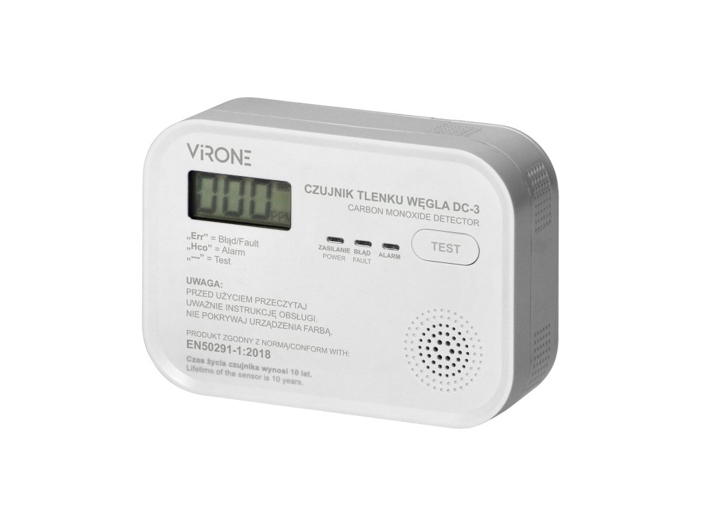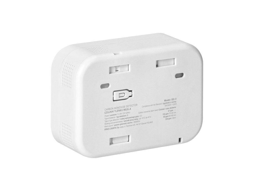Dispozitivul este destinat monitorizării continue a concentrației de CO (monoxid de carbon) din aer, precum și pentru detectarea și avertizarea în cazul depășirii concentrației maxime sigure a acestui gaz. Senzorul nu detectează alte gaze otrăvitoare sau inflamabile. Este disponibil și un buton TEST pentru a verifica funcționarea corectă a dispozitivului. Detectorul de monoxid de carbon este conform cu standardul EN 50291-1:2018 pentru detectoarele de monoxid de carbon de uz casnic.Parametri suplimentari