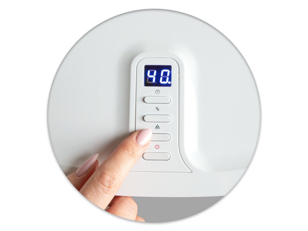 Ușor de utilizatAfișajul de pe partea superioară a dezumidificatorului asigură confort maxim utilizatorului. Toți parametrii de funcționare pot fi setați pe afișaj. Când rezervorul de apă este plin, compresorul se oprește și ventilatorul pornește automat.