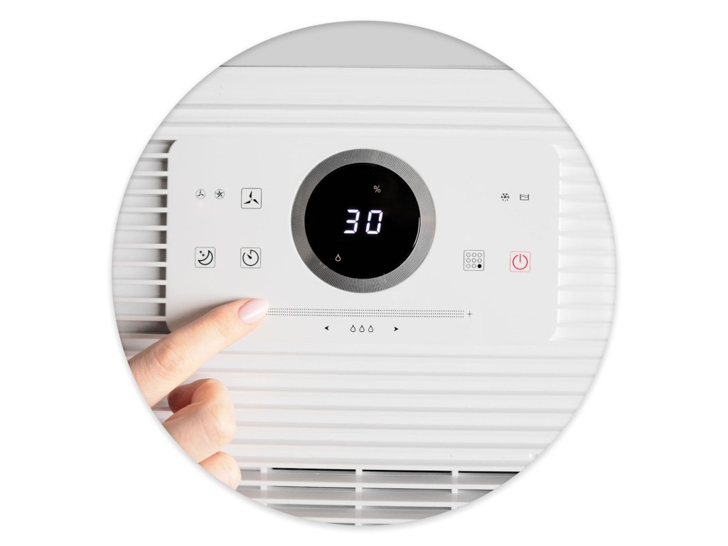 # display se afișează#umiditatea actuală din# cameră și funcțiile selectate. Puteți activa cu ușurință #modul de noapte#, care oprește panoul și vă permite să dormiți confortabil sau pur și simplu să economisiți energie.# #Utilizare practică - modul de noapte și uscarea rufelor!# # #Eleganță în interiorul tău