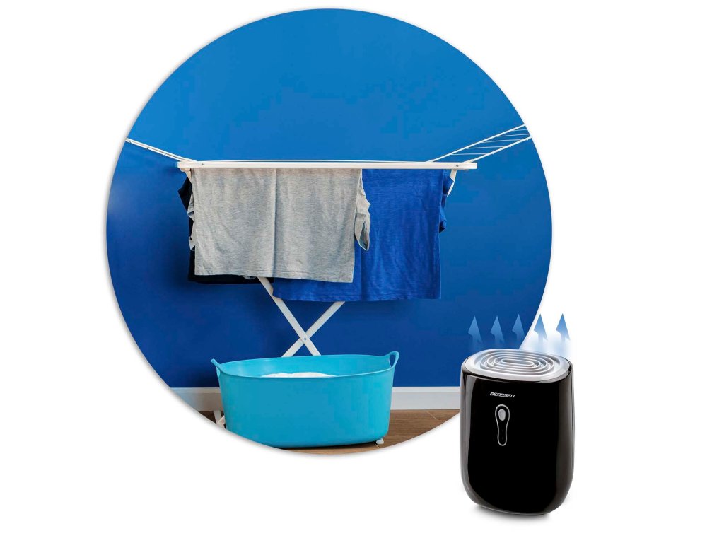 - previne umidificarea mediului prin absorbția umidității din rufe.