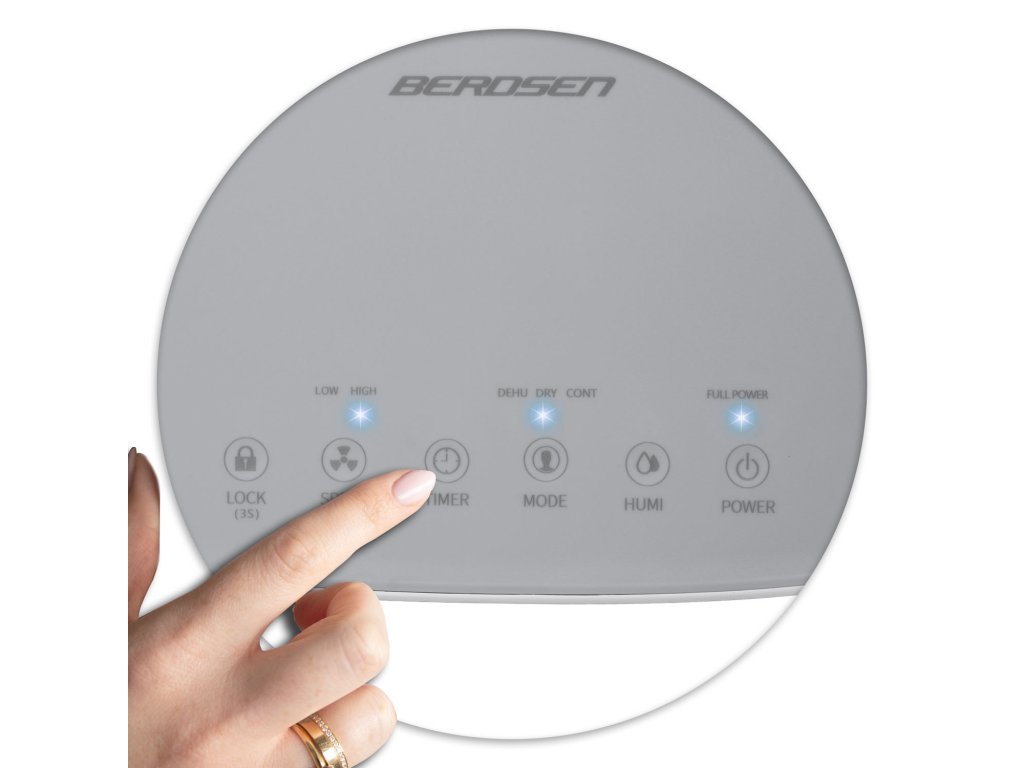tactil, cu sistem soft touch, amplasat în partea superioară a dezumidificatorului, asigură cel mai înalt confort de utilizare. Cu ajutorul acestuia, puteți regla toate parametrii de funcționare.
