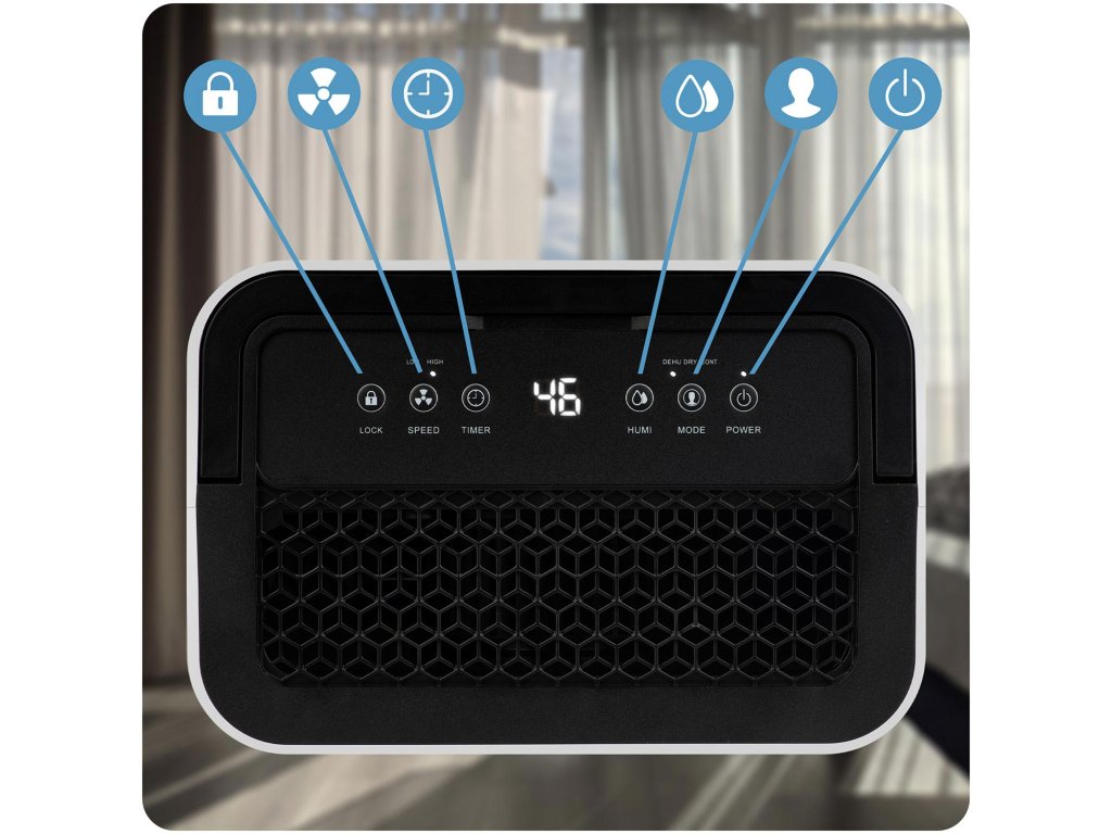 Sprijină eficient procesul de uscare a rufelor- Scurtează timpul de uscare a hainelor – dezumidificatorul usucă intens aerul, accelerând procesul natural de evaporare a umidității din rufe.