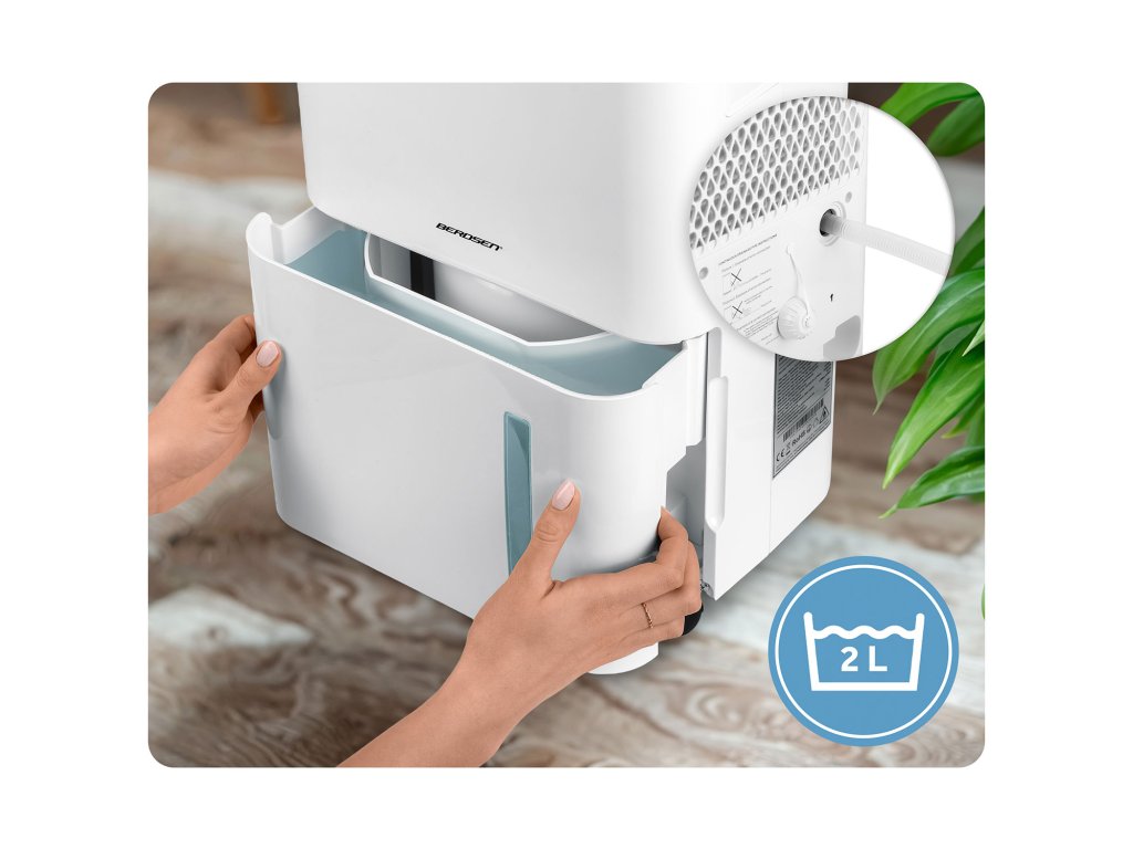 - Trei moduri de operare – dezumidificare, dezumidificare continuă, uscare a rufelor.