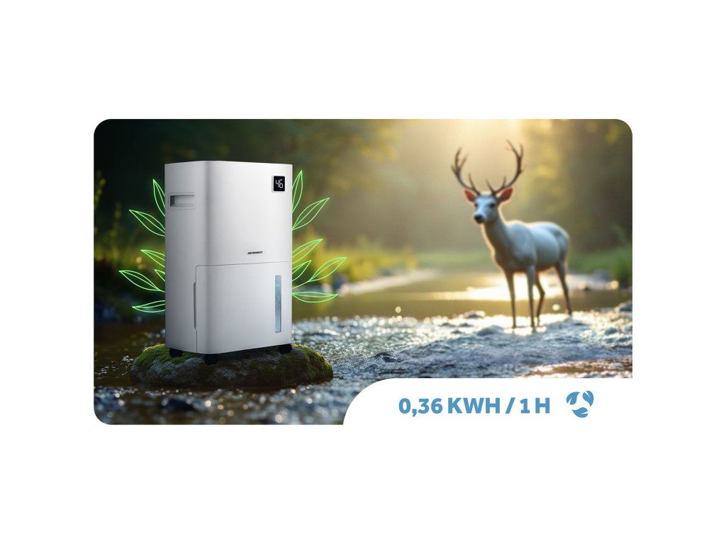 În armonie cu natura și ultimele directiveÎn dezumidificatorul nostru am folosit agentul frigorific R290, care nu distruge stratul de ozon (potențial scăzut ODP) și are