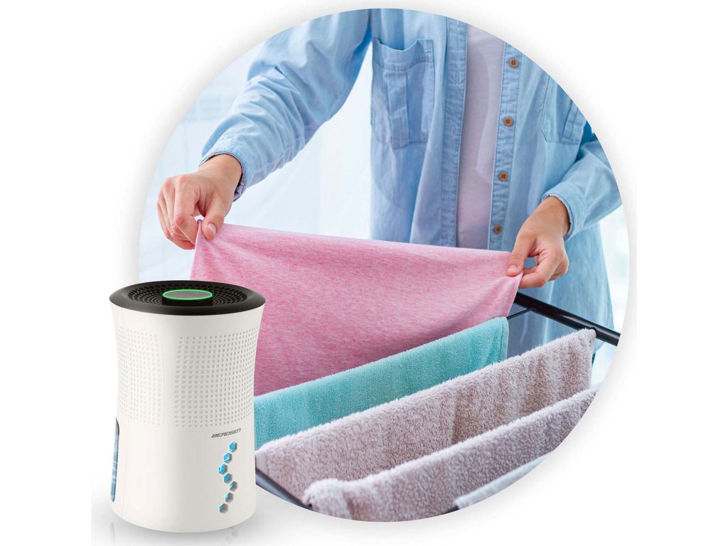 - Scurtează timpul de uscare a hainelor – deumidificatorul usucă intens aerul, accelerând procesul natural de evaporare a umidității din rufe.