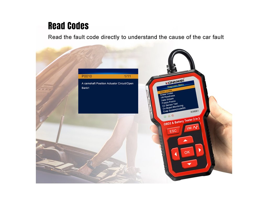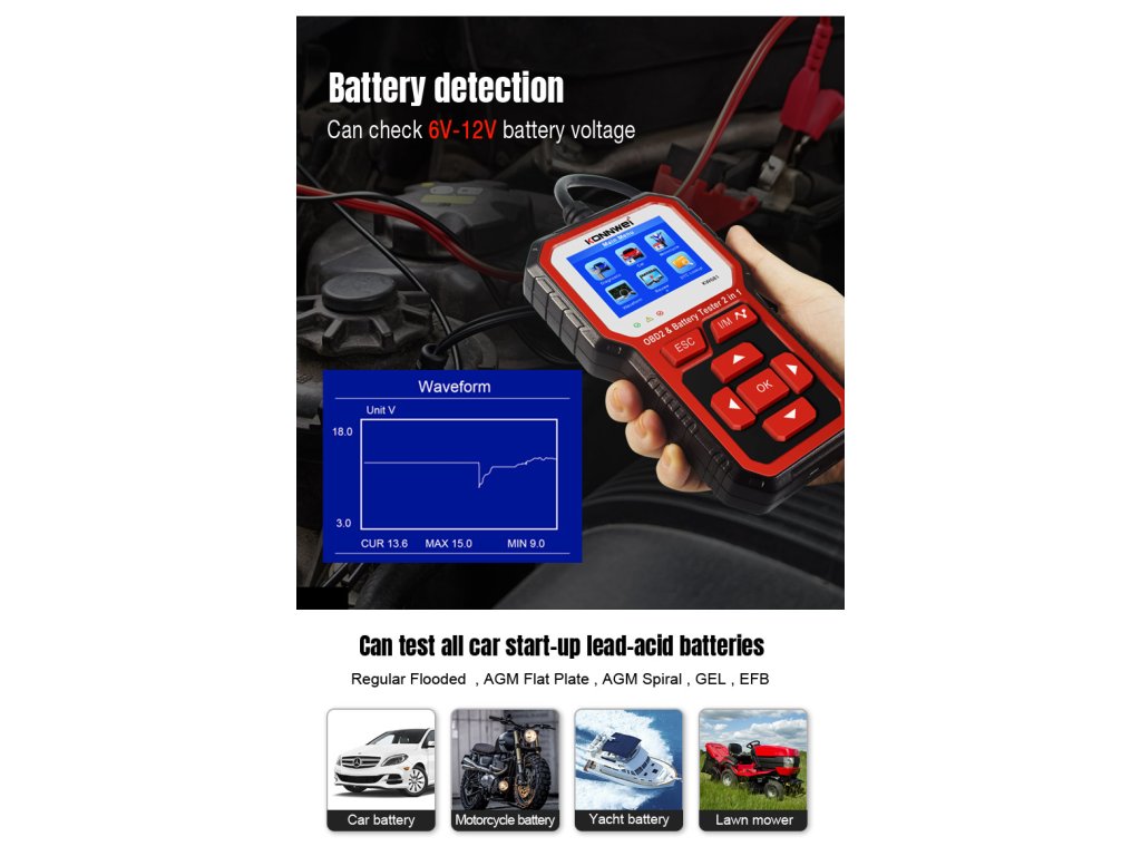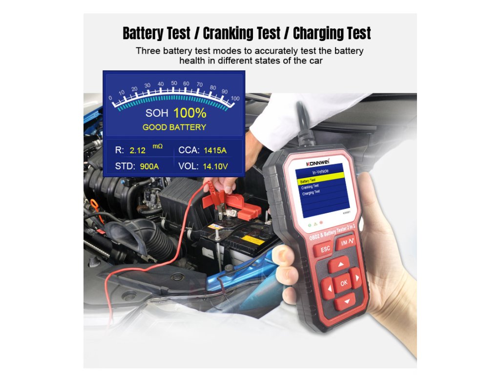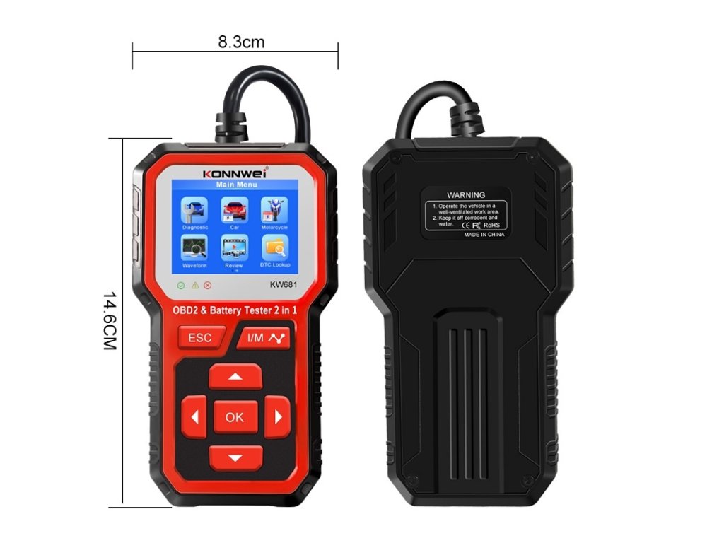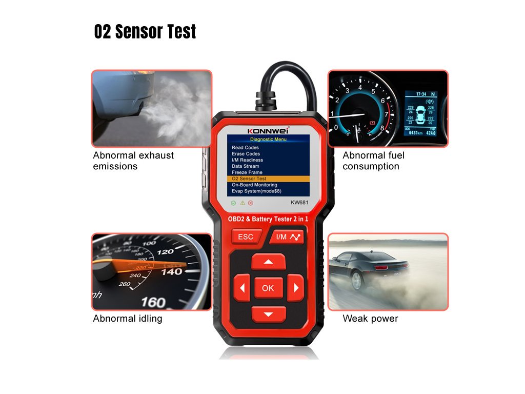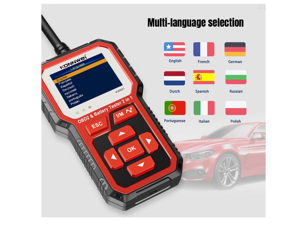 Diagnosticare auto OBD2 Konnwei KW681 + tester de baterii auto