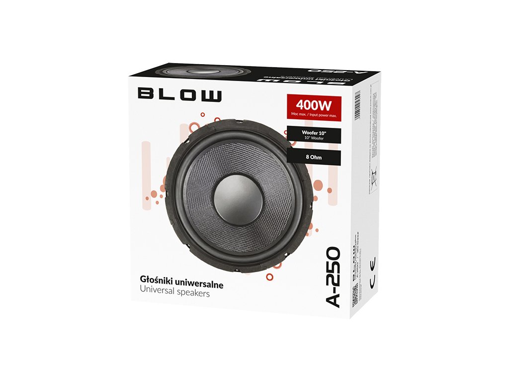 A-25010” WooferMax. putere: 400 WImpedanță: 8 OhmiInterval de frecvență: 37HZ-2,5KHZSensibilitate: 93dB/1w/1mMagnet: 50OZBobină: aluminiu 2”Suspensie din cauciuc butilic Ambalajul colectiv conține: 4 bucăți .Parametri suplimentari