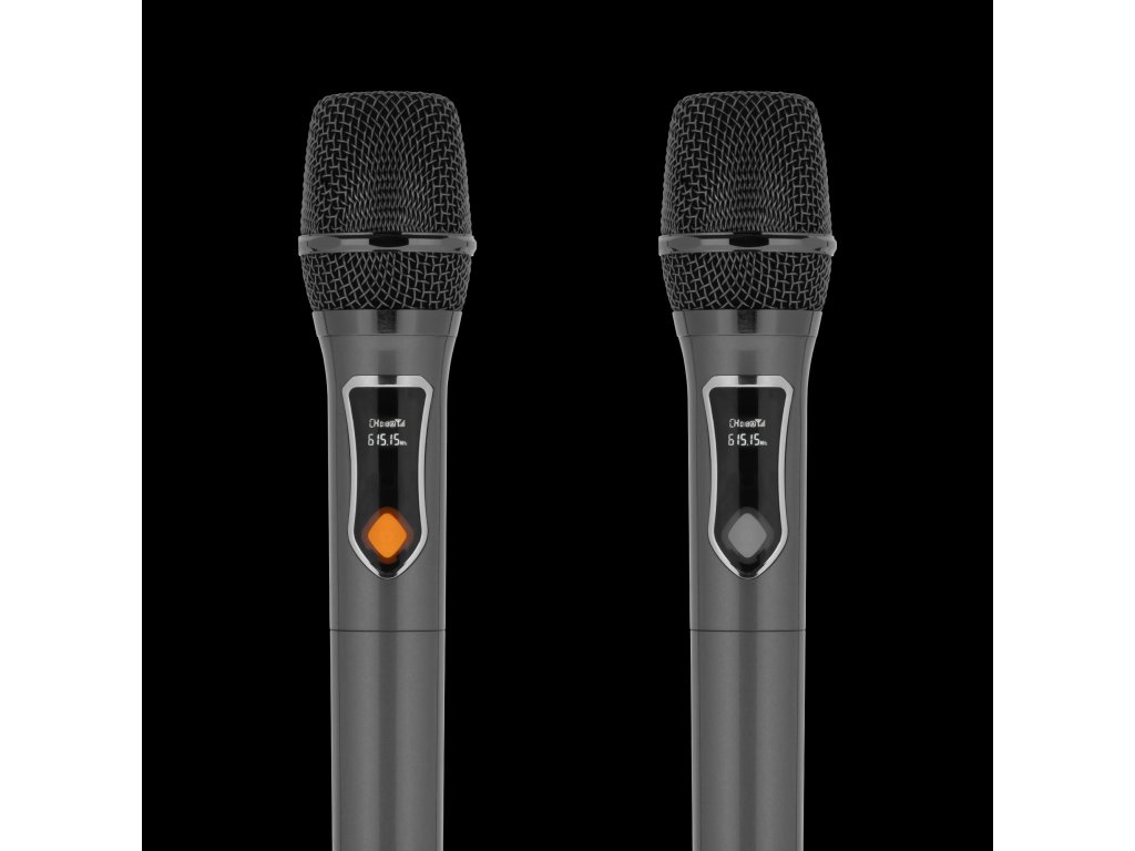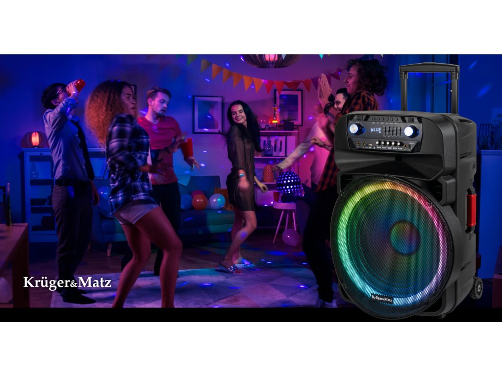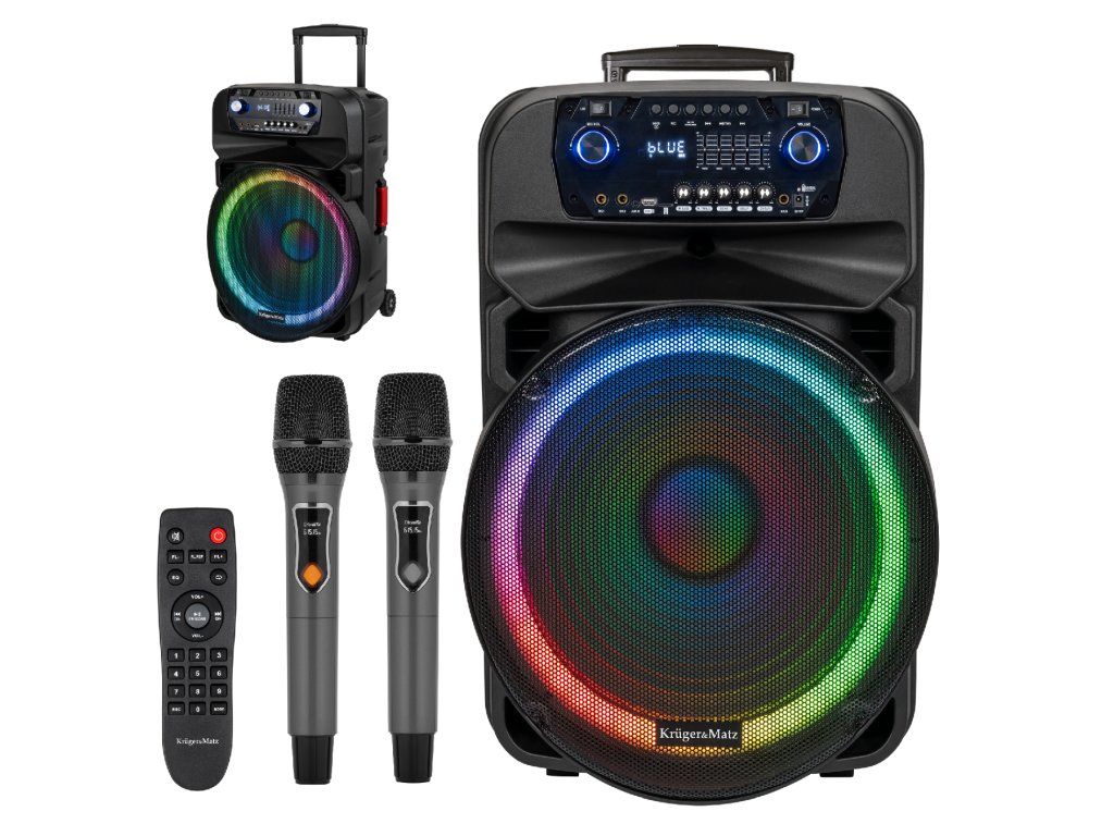 Ascultarea cântecelor altor persoane a devenit plictisitoare Datorită boxei Kruger&Matz KM 1718, dumneavoastră și prietenii dvs. vă puteți demonstra abilitățile! Setul include două microfoane, care vă vor permite să organizați un karaoke de neuitat. Boxa are, de asemenea, o intrare pentru chitară – surprindeți-i pe toți cu un concert live!