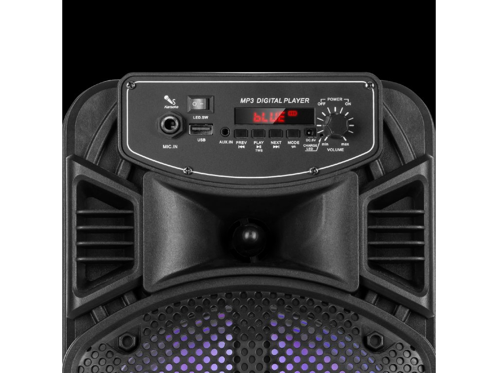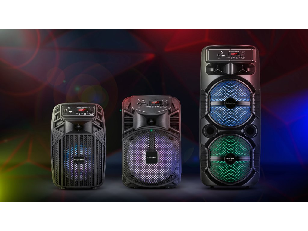 Ați invitat prietenii la o petrecere acasă Asigurați-vă că își vor aminti această seară și alegeți Kruger&Matz Music Box! Unul dintre principalele avantaje ale acestei boxe Bluetooth este intrarea pentru microfon, care vă permite să transformați dispozitivul într-un set de karaoke. Atmosfera petrecerii este completată și de iluminarea expresivă. Aveți chef de dans cu prietenii Music Box este echipat cu doi difuzoare - unul de 8 inch și unul de 1 inch - care vor cânta cu o putere de 10 W. Dacă totuși nu este suficient pentru dumneavoastră, puteți folosi funcția True Wireless Stereo, care permite conectarea fără fir a două boxe Kruger&Matz Music Box.