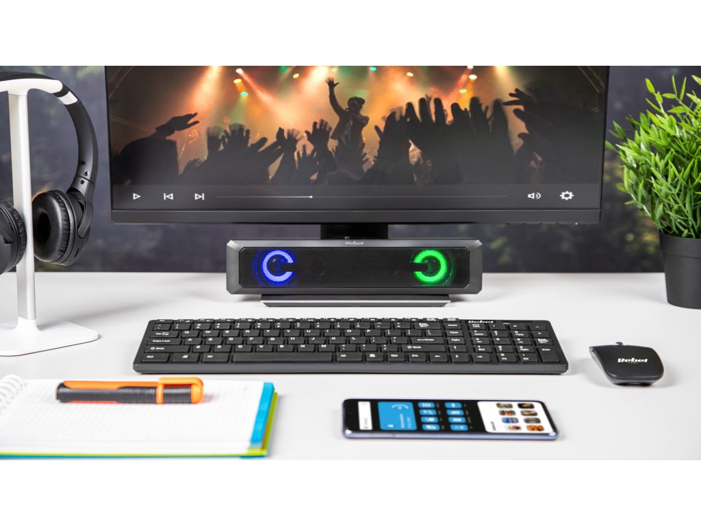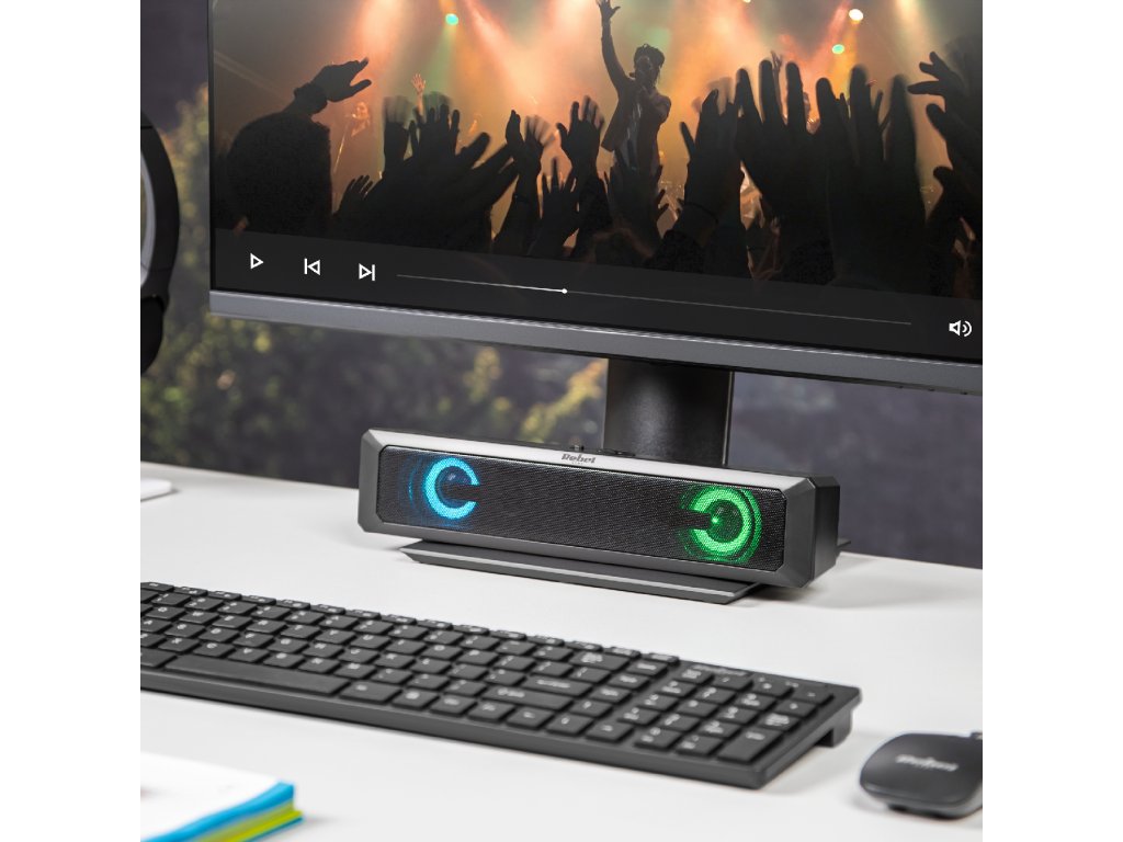 Cine spune că dispozitivul audio pentru calculator trebuie să fie format din cel puțin două difuzoare  Dacă masa ta nu are suficient spațiu, poți alege bareta de sunet pentru calculator din seria Rebel Comp. Acest difuzor pentru calculator este echipat cu două drivere cu o putere de 3 W, care îți va face mai plăcute munca zilnică cu muzica sau vizionarea filmelor.