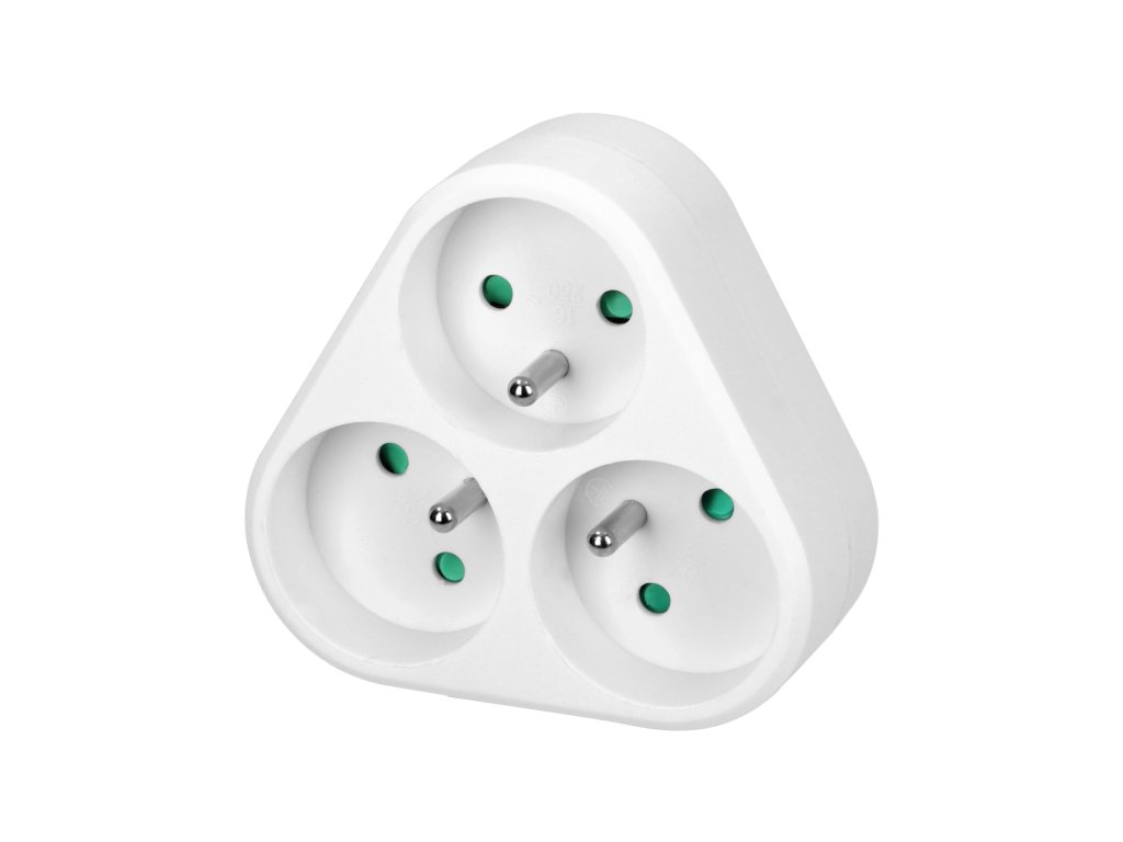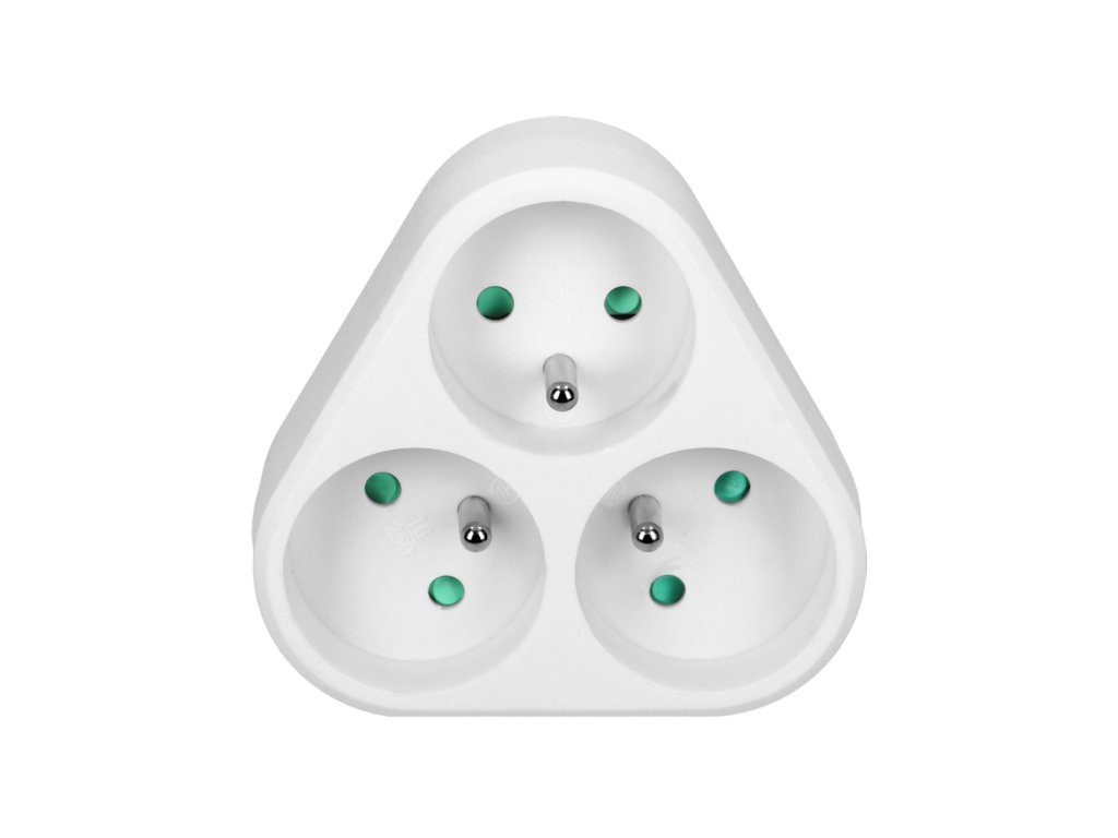 - Trei prize bipolare: Aparatul oferă trei prize separate 2P+E, care permit conectarea convenabilă a mai multor aparate electrice simultan, fără nevoie de cabluri prelungitoare suplimentare.