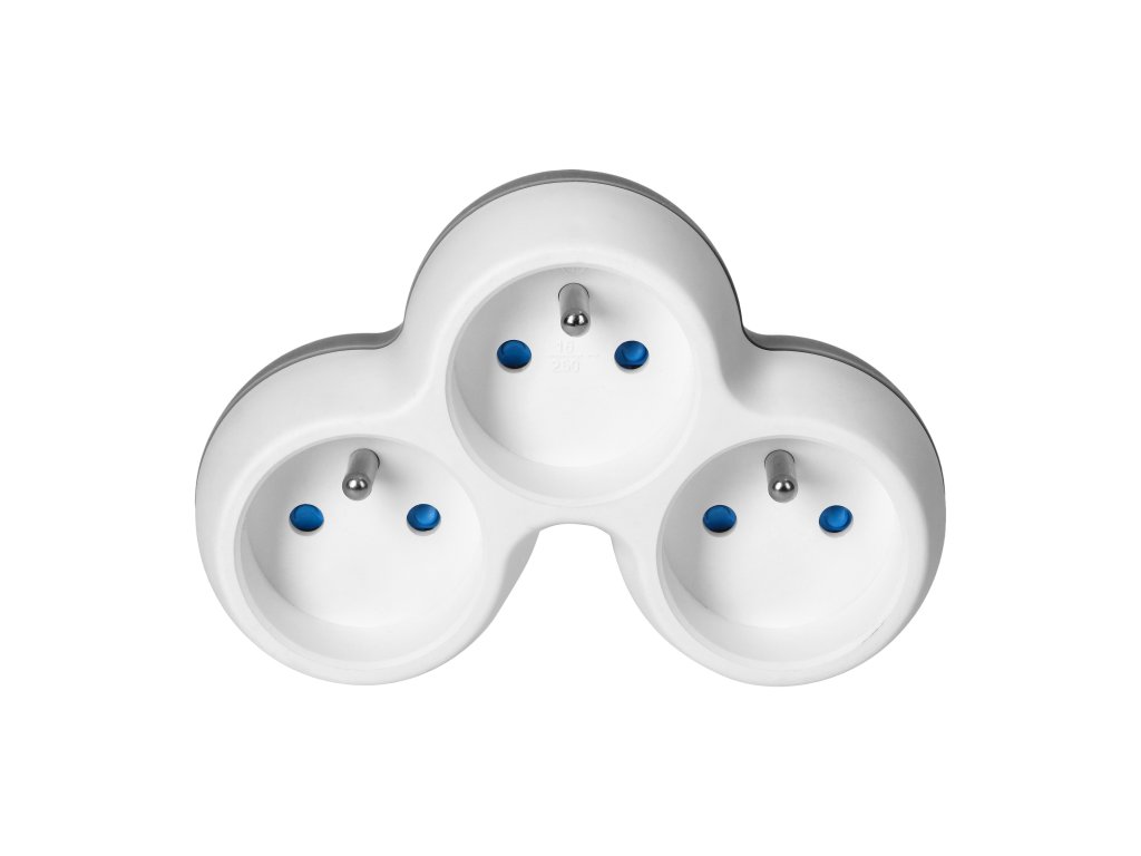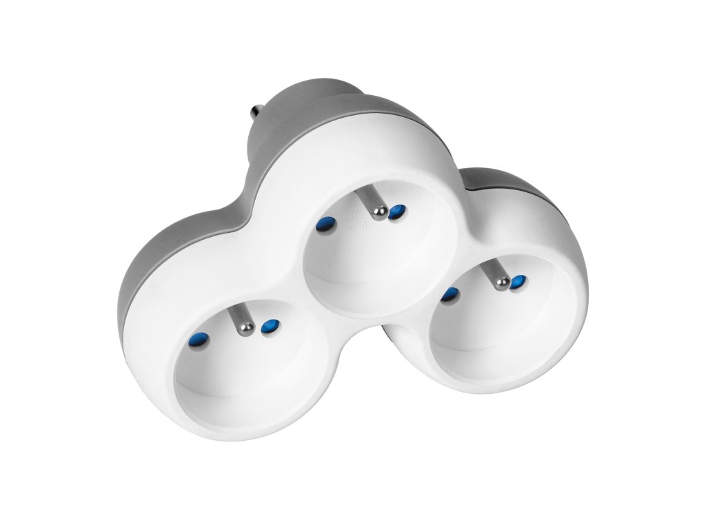 Împărțitor de prize 3x2P+E, alb-gri