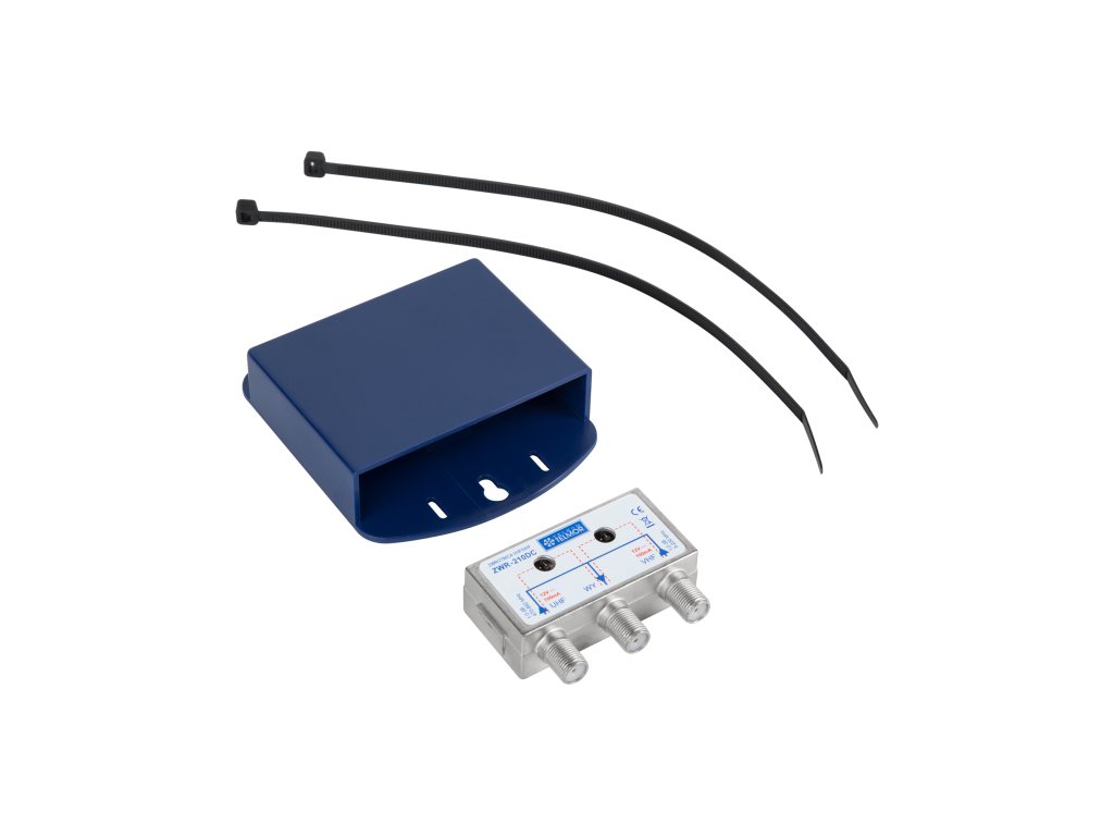 ZWR-210DC este un diplexer de antenă cu două intrări: VHF și UHF și o ieșire. Dispozitivul este utilizat pentru adunarea semnalelor de la antenele TV VHF și UHF. Conexiunea asigură transferul tensiunii de alimentare de la intrare la ieșirile VHF și UHF, ceea ce permite alimentarea preamplificatoarelor de antenă. În acest scop, trebuie să amplasați un jumper pe banda de pini corespunzătoare, care este accesibilă prin unul dintre orificiile carcasei. În caz de colaborare între crossover și antene pasive, jumperii ar trebui eliminați complet de pe benzile de contacte. Crossover-ul de antenă ZWR-210DC poate fi montat pe un stâlp de antenă după plasarea sa într-o carcasă de tip MSA (carcasă rezistentă la stropire