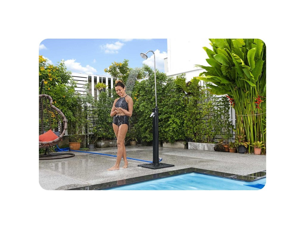 Este potrivit oriunde aveți nevoie să vă clătiți înainte sau după intrarea în piscină, sau doar doriți să vă răcoriți în căldură.