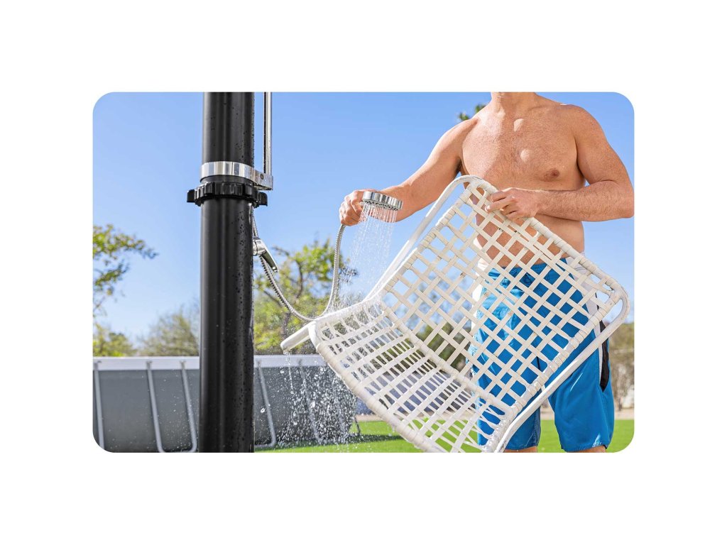Util oriunde ai nevoie să te clătești înainte sau după intrarea în piscină sau pur și simplu dorești prospețime în căldură.