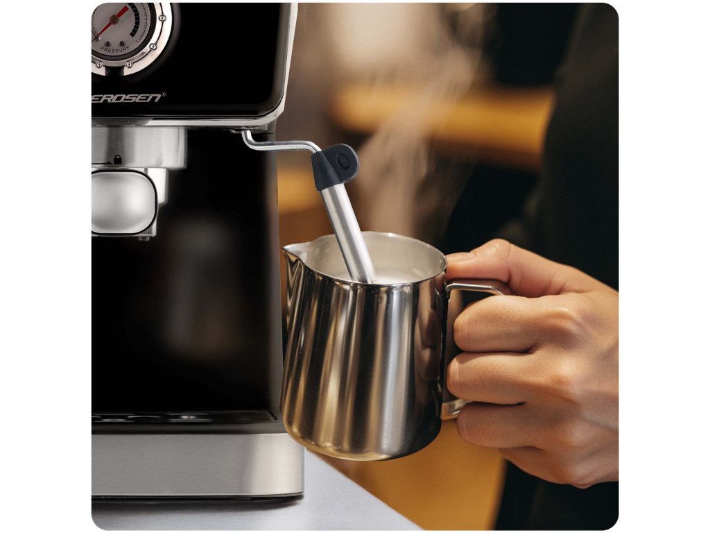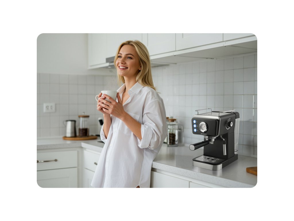 Espressor cu manetă și duză pentru spumarea laptelui 20 bari Avantajele produsului: ✅ 20 bari presiune și 1350 W putere — crema autentică și aroma completă ca la cafeneaua ta preferată. ☕ ✅ Manometru. ✅ Spumator de lapte și 2 filtre — pregătește-ți cafeaua preferată ca un barista. ✅ Rezervor de apă detașabil (1,5 l) — prepară până la 12 cafele fără a fi nevoie să umpli constant rezervorul. ✅ Manometru integrat — fii sigur că cafeaua ta va fi mereu perfectă. ⭐⭐⭐⭐⭐ Alege gustul, stilul și calitatea profesională — o dimineață ideală fără zgomot inutil! Espresso, latte, cappuccino, americano. Cu acest espressor îți vei prepara băuturile profesionale în confortul casei — exact așa cum îți place. Un singur aparat, multe gusturi. Cafenea acasă, la îndemână! Puterea și precizia ascunse în interior O pompă de presiune eficientă de 20 bari și un sistem de preparare precis extrag tot ce este mai bun din cafea — aromă intensă, gust adânc și cremă perfectă. Designul modern este garanția fiabilității și a efectului profesional în fiecare ceașcă. ✔️ Spumă perfectă ca la cafenea Duza integrată pentru spumare îți permite să pregătești cu ușurință laptele pentru cappuccino, latte și flat white — spumă densă, catifelată la îndemână! Duza este detașabilă, ceea ce face curățarea ei rapidă și ușoară. Cele mai importante caracteristici care fac diferența Funcționare silențioasă — espressorul funcționează foarte discret. Înaltă calitate a construcției — detalii bine finisate garantează fiabilitatea. Duza profesională pentru spumare lapte — permite pregătirea unei spume catifelate pentru cappuccino, latte și nu numai. Presiune 20 bari — pompa puternică asigură aroma intensă și gustul bogat al fiecărei cafele. Butoane funcționale simple: on/off, prepararea cafelei, activarea duzei de spumare lapte. ✔️ Dozează și presă în aceeași mișcare – precizie și comoditate! Setul include un instrument practic 2 în 1: o lingură de dozat cafeaua și un tamper pentru presare. Cu ajutorul acestuia, vei putea umple cu ușurință aceasta cantitatea corespunzătoare de cafea în manetă, apoi o vei putea presăra uniform, un aspect esențial pentru obținerea aromei complete și a gustului bogat al espresso-ului. Această soluție este confortabilă, rapidă și precisă — ideală atât pentru începători, cât și pentru barista de acasă. Setul barista în bucătăria ta Un mâner solid cu manetă, două filtre din oțel inoxidabil (simplu și dublu) și o lingură practică cu tamper sunt setul care îți permite să pregătești espresso exact așa cum îți place. Durabilitate, precizie și comoditate în utilizare — tot ce ai nevoie pentru ritualul tău de preparare a cafelei acasă. Ceașcă mică sau cană mare Indiferent dacă dorești un espresso într-o ceașcă, o porție dublă, cafea cu lapte într-un pahar sau băutură to go într-o cană termică — acest espressor se adaptează. Tava de scurgere detașabilă permite ajustarea ușoară a înălțimii pentru fiecare recipient. Pentru tine, pentru doi, la pachet — cum vrei, când vrei. ☕ Cafeaua care unește. Plăcerea zilnică în stil desăvârșit. Elementele principale Lingură cu tamper Butoane funcționale Manometru Sito simplu și dublu Manetă cu dozator dublu Grila detașabilă pentru scurgere Bază antiderapantă Rezervor de apă detașabil cu mâner pliabil Termometru integrat Mâner de reglare a emisiilor de aburi Spumator de lapte Tava de scurgere detașabilă Date tehnice Presiunea pompei: 20 bari Putere nominală: 1350 W Ecran tactil Alimentare: 220-240 V Rezervor de apă: 1,5 l Tava de scurgere detașabilă Duza de spumare detașabilă Lungimea cablului: 0,75 m Cafea măcinată Manometru Set cu 2 filtre – filtru din oțel inoxidabil simplu sau dublu Certificate: CB, CE, GS, RoHS, LFGB,Parametri suplimentari