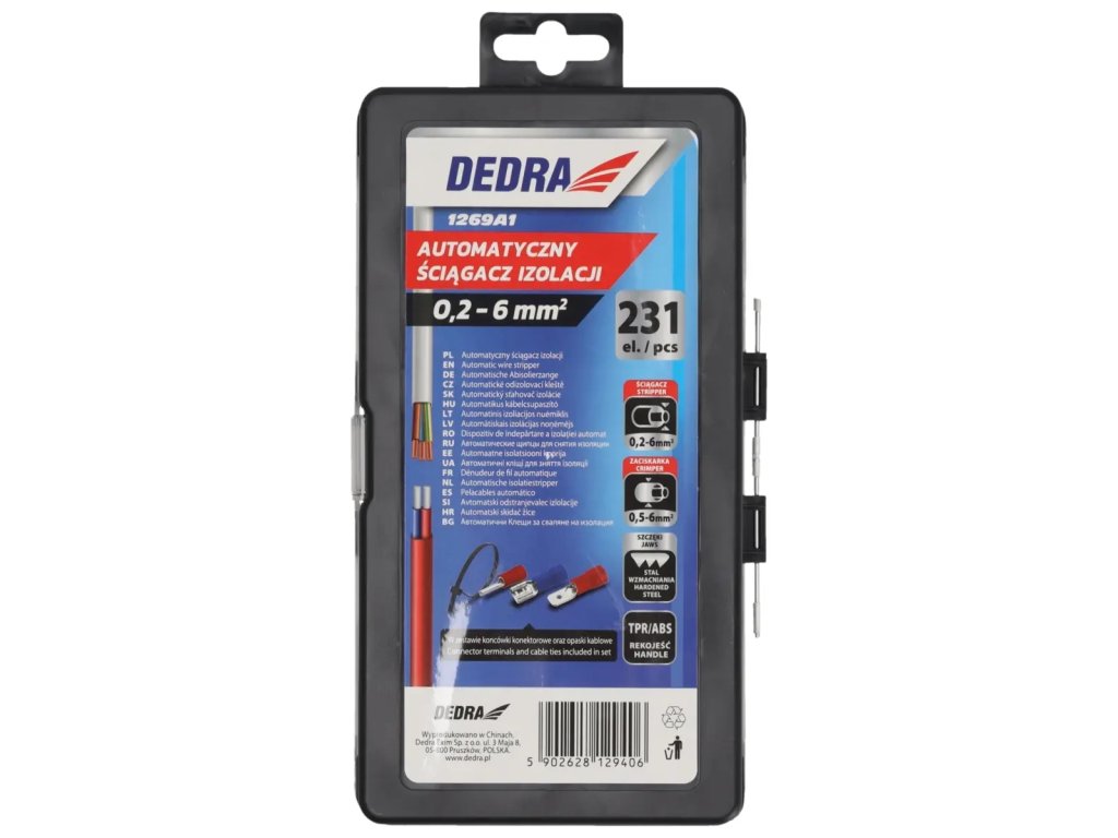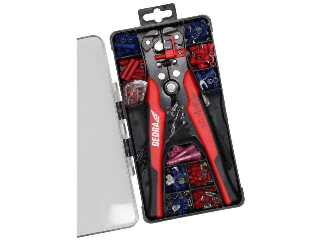Decapator de izolație DEDRA 1269A1 este un instrument foarte simplu de utilizat, cu ajutorul căruia putem înlătura rapid și precis izolația de la capetele cablurilor electrice.