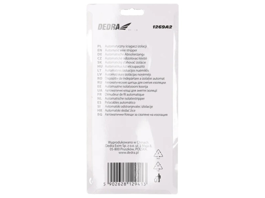 Decopertor de izolație pentru cabluri DEDRA 1269A2 este un instrument extrem de simplu de utilizat, cu ajutorul căruia putem îndepărta rapid și precis izolația de la capetele cablurilor electrice.