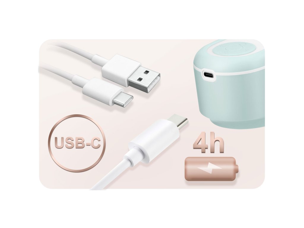 Pompa Nukido funcționează fără fir. Este echipată cu o baterie litiu care, după încărcare, permite 4 ore de utilizare, și se încarcă folosind încărcătorul USB-C inclus.