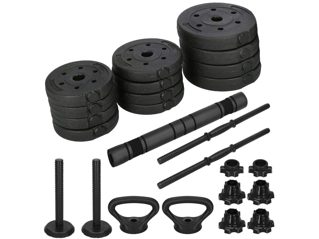 - Greutatea fiecărui disc: 4x 2,5 kg; 4x 1,25 kg; 4x 1 kg
