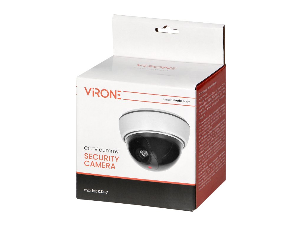 Acest dispozitiv este potrivit pentru utilizare în casă, pe proprietate, dar și într-o mică afacere sau magazin. Aspectul sferic al unei camere reale creează impresia unei monitorizări reale. Nivelul de protecție IP20 permite instalarea camerei false pe tavanul clădirii.