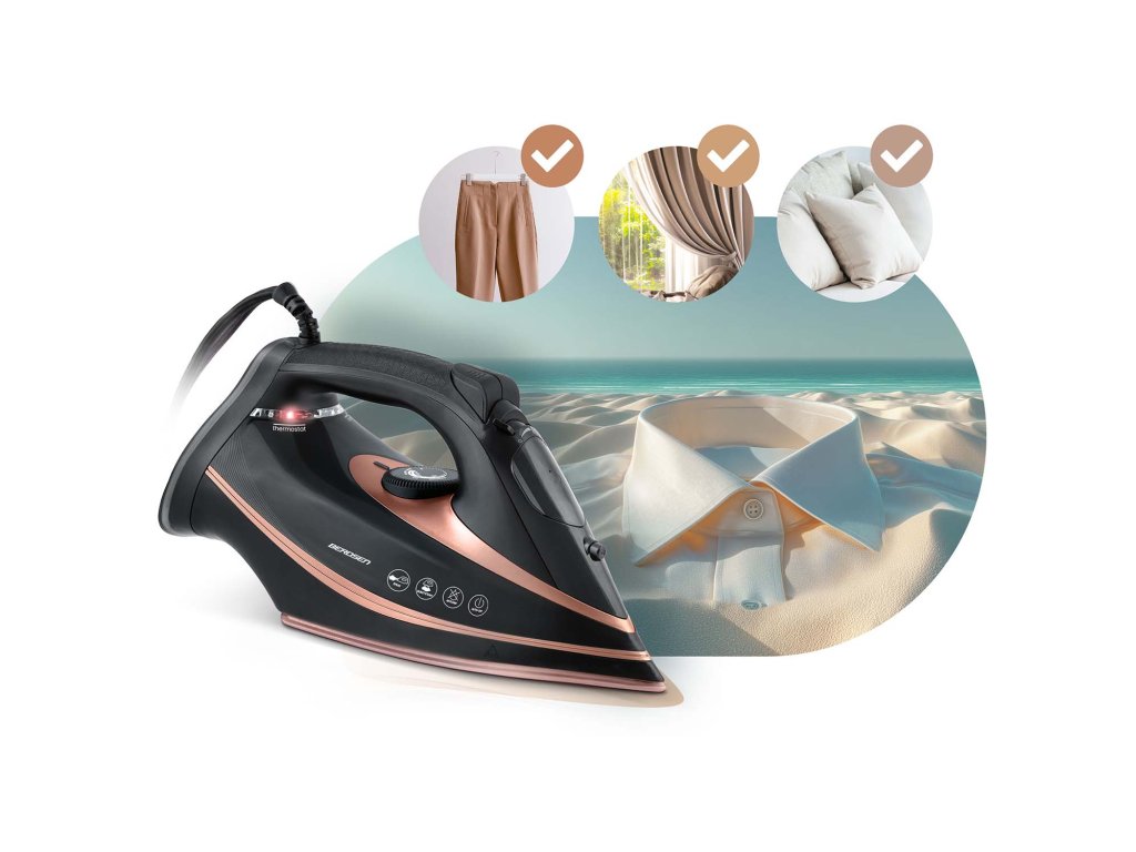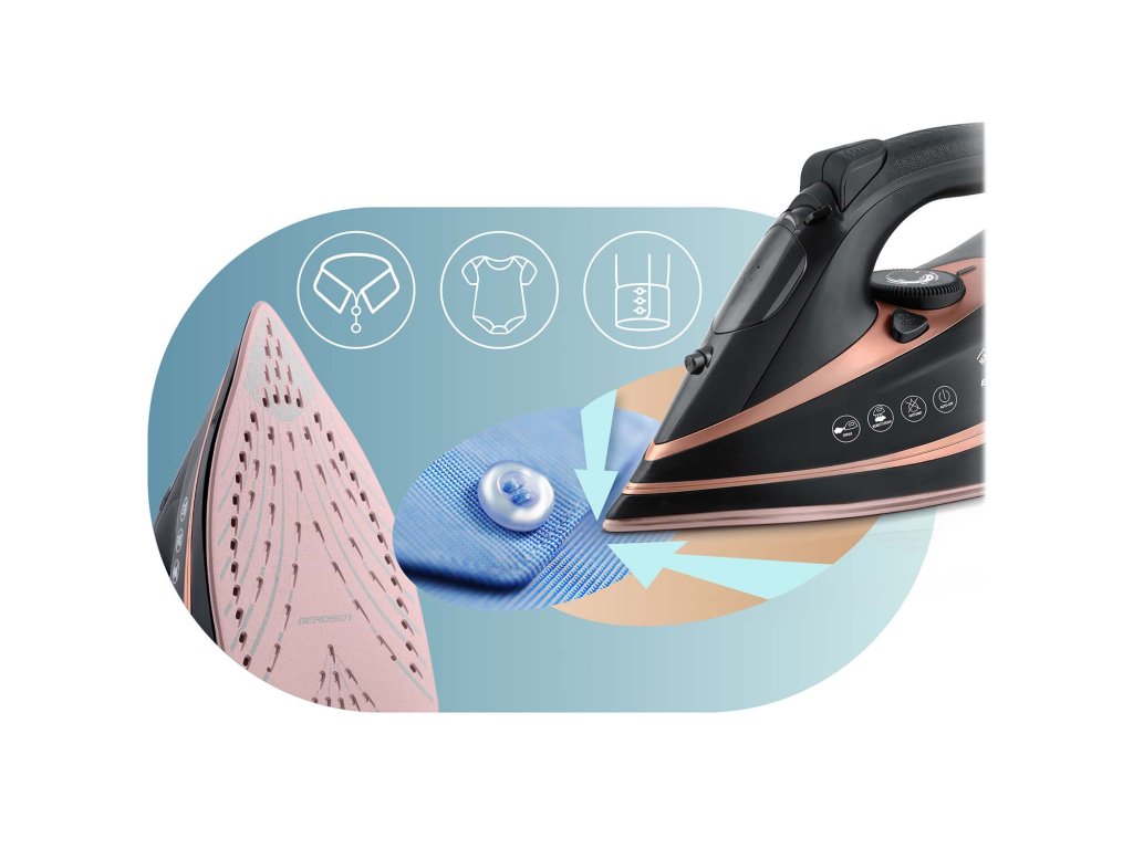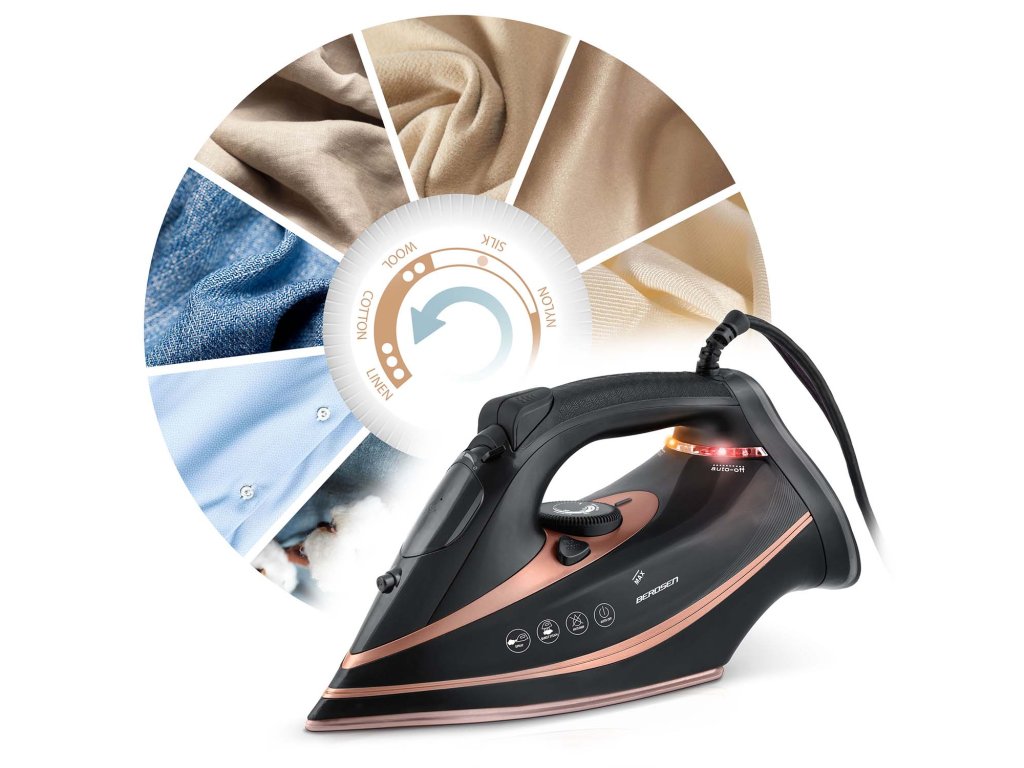 Nu risca arderi sau haine necalcate. Datorită reglajului fin al temperaturii, fierul de călcat Berdsen se adaptează fiecărei țesături – de la mătase delicată la in gros.