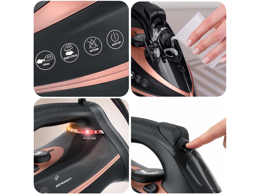 Fier de călcat cu abur puternic, cu dublă evacuare a aburului 10 în 1 marca Berdsen