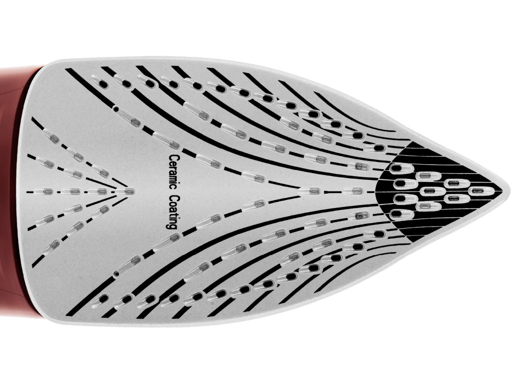 O caracteristică remarcabilă este talpa cu înveliș ceramic, care garantează o alunecare bună pe țesătură și o călcare ușoară. Este, de asemenea, rezistentă la zgârieturi și ușor de curățat.