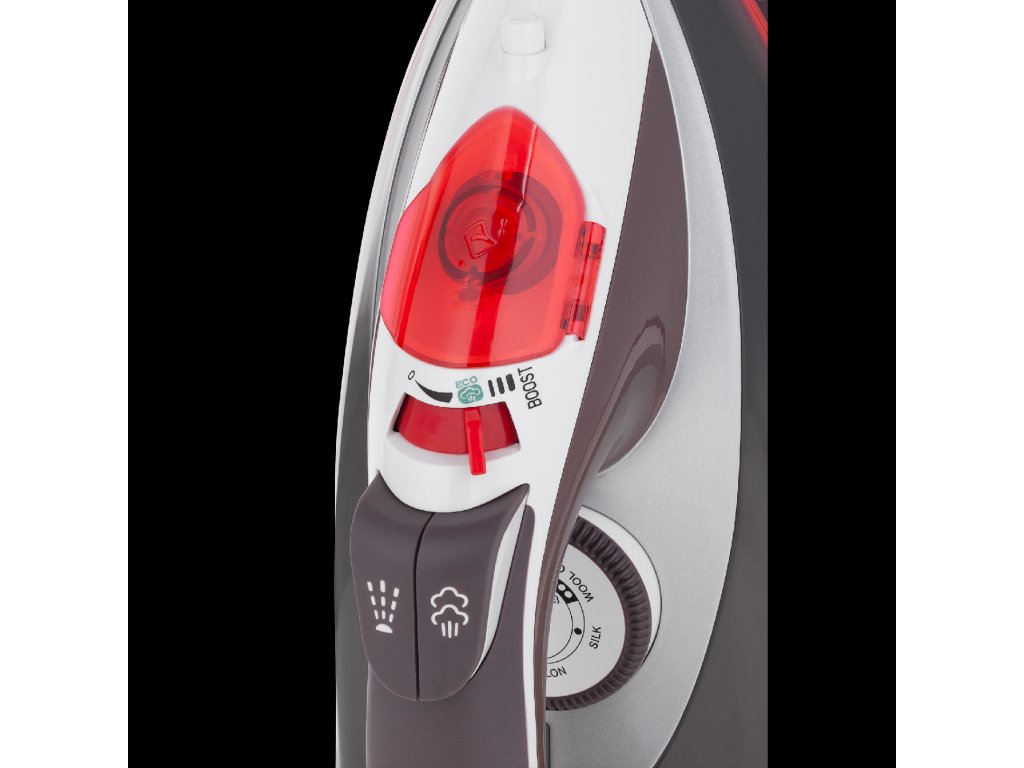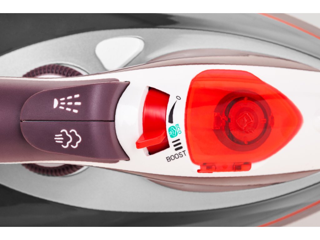 Fierul de călcat Teesa Slide Precision 3000 are, de asemenea, o reglare în 3 trepte a debitului continuu de abur. Dacă totuși treapta cea mai mare - BOOST - nu elimină toate cutele, folosiți funcția suplimentară de jet de abur.