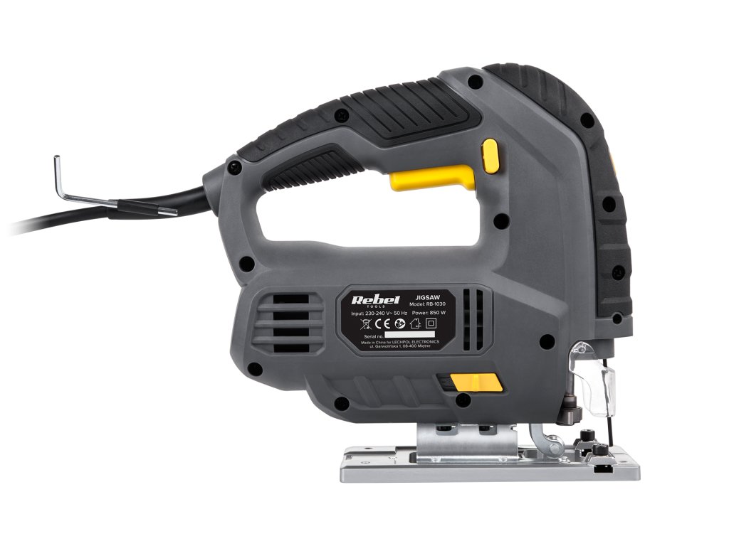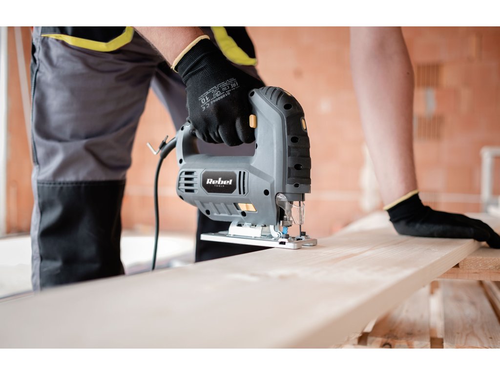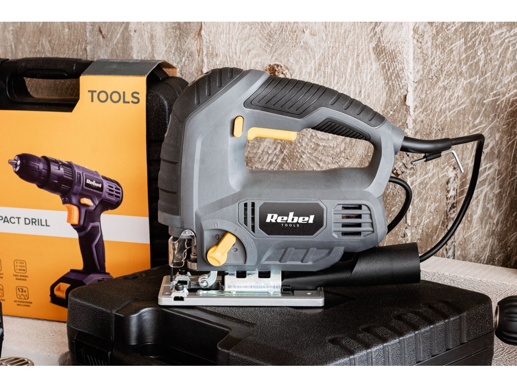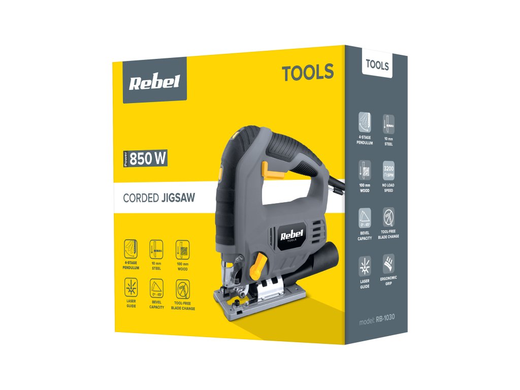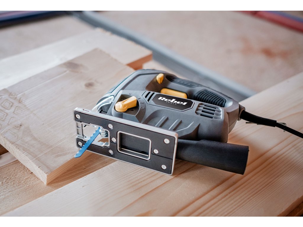 Dacă vă place să petreceți timp bricolând și creând tăieturi și ornamente din lemn, plastic sau metal, fierăstrăul pendular Rebel Tools 850 W vă va îndeplini așteptările. Schimbarea sigură a lamei fără utilizarea uneltelor, combinată cu ghidarea laser pentru tăiere precisă, vă va ușura orice muncă în confortul atelierului dumneavoastră.În funcție de efectul dorit, puteți folosi una dintre cele patru setări pentru ajustarea mișcării pendulare a lamei. În plus, fierăstrăul pendular Rebel Tools este echipat cu unghi de tăiere reglabil până la 45 de grade pe ambele părți, astfel va fi ideal și pentru lucrări avansate care necesită tăieri oblice. Pentru a utiliza mașina mai confortabil, are un adaptor pentru conectarea unui aspirator de atelier, care îmbunătățește vizibilitatea lucrului prin aspirarea prafului.