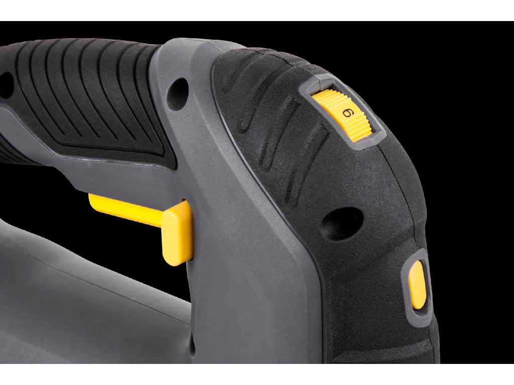 Așa cum se cuvine pentru sculele de atelier robuste, fierăstrăul pendular Rebel Tools are un capac metalic rezistent care, în combinație cu carcasă solidă și mâner cauciucat garantează o muncă de lungă durată și ergonomică de-a lungul anilor. Schimbarea lamei fără utilizarea uneltelor