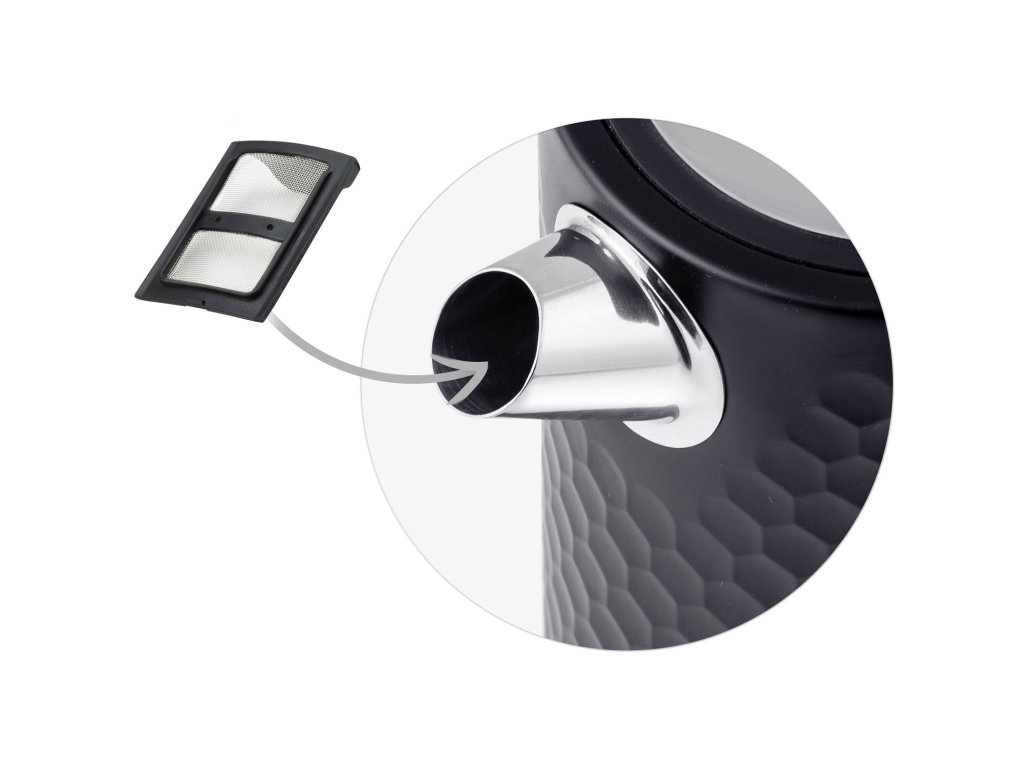 - fierbător de apă cu filtru metalic anticalcar, care poate fi curățat sau înlocuit cu unul nou. Datorită acestuia, nu veți găsi niciodată depuneri de calcar în ceaiul dumneavoastră.