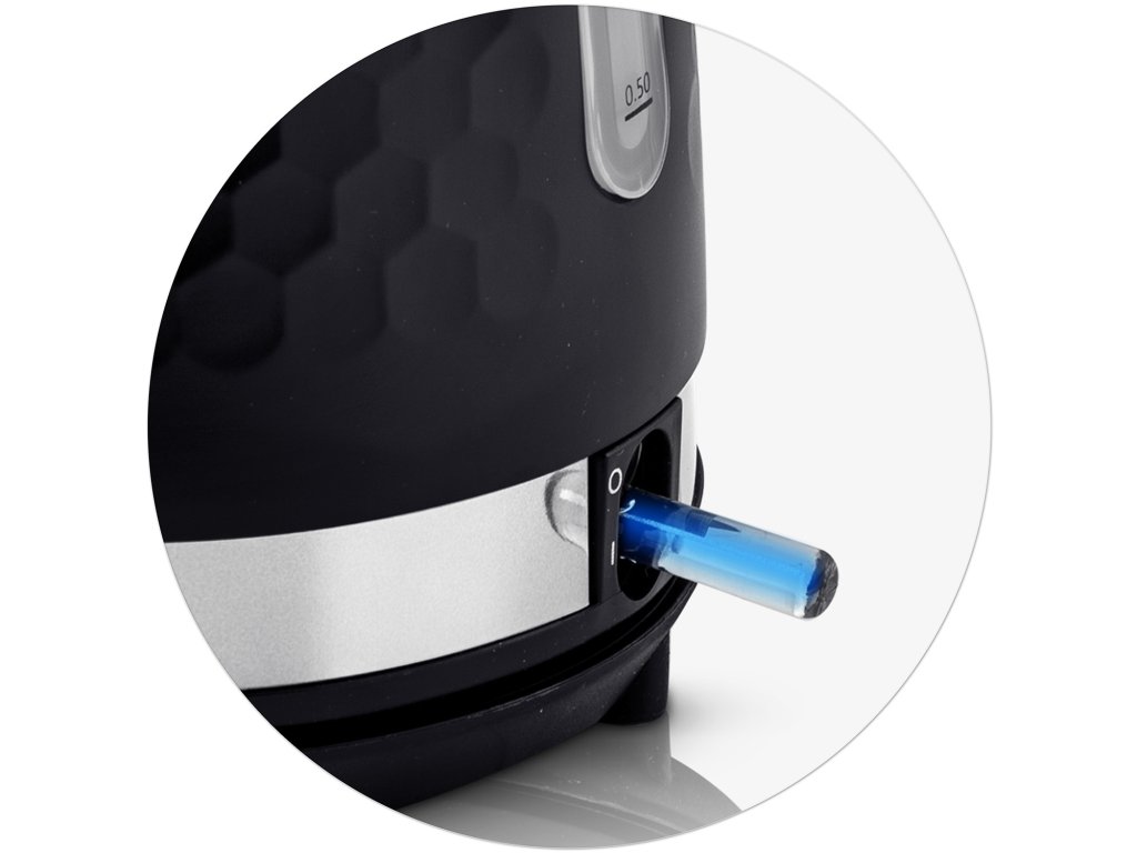 Fierbătorul are un comutator luminat și un indicator de nivel de apă realizat din material transparent.
