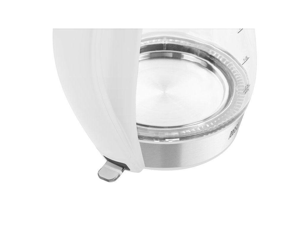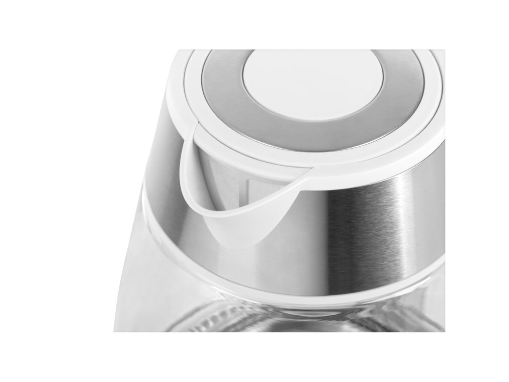 mâner din plastic disponibil în două culori: alb sau negru. De aceea, aparatul se integrează perfect în atmosfera oricărei bucătării. Atracția fierbătorului este amplificată și de iluminarea albastră, care amintește de apa fierbinte, precum și de funcția de oprire automată și protecția împotriva pornirii fără apă.