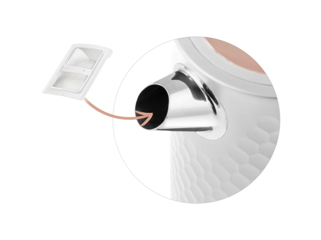 - fierbător electric cu filtru metalic împotriva depunerilor de calcar, care poate fi curățat sau înlocuit cu unul nou. Datorită lui, nu veți mai găsi niciodată depuneri de calcar în ceaiul dumneavoastră.